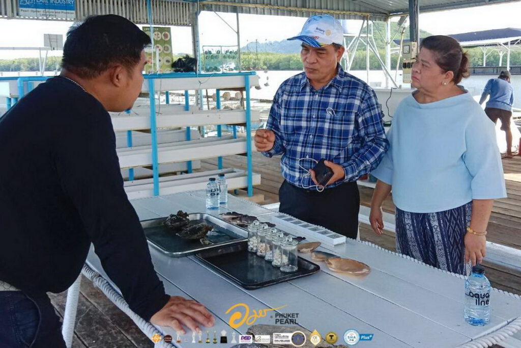 เมื่อเร็วๆ นี้ นายอมร อินทรเจริญ ประธานกรรมการบริษัท ภูเก็ตไข่มุก จำกัด พร้อมด้วยเจ้าหน้าที่บริษัท ให้การต้อนรับ นายพิเชษฐ์ ปาณะพงศ์ รองผู้ว่าราชการจังหวัดภูเก็ต พร้อมด้วยภริยา นางสาวนันทาศิริ รณศิริ ผู้อำนวยการการท่องเที่ยวแห่งประเทศไทย สำนักงานจังหวัดภูเก็ต นางวิรินทร์ตรา ปภากิจยศพัฒน์ ผู้บริหารบริษัท นิกรมารีน จำกัด ในโอกาสเข้าเยี่ยมชมการเพาะเลี้ยง และผลิตไข่มุก แบบครบวงจรของ บริษัท ภูเก็ตไข่มุก ที่ได้รับเครื่องหมายสิ่งบ่งชี้ทางภูมิศาสตร์ (GI)