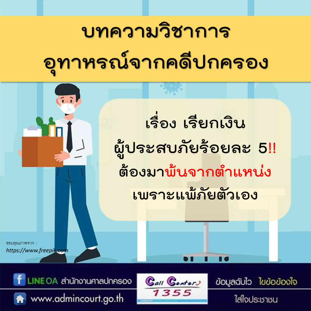 เรื่อง  เรียกเงินผู้ประสบภัยร้อยละ 5 : ต้องมาพ้นจากตำแหน่ง เพราะแพ้ภัยตัวเอง