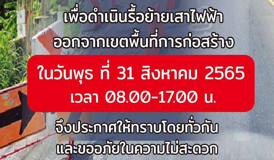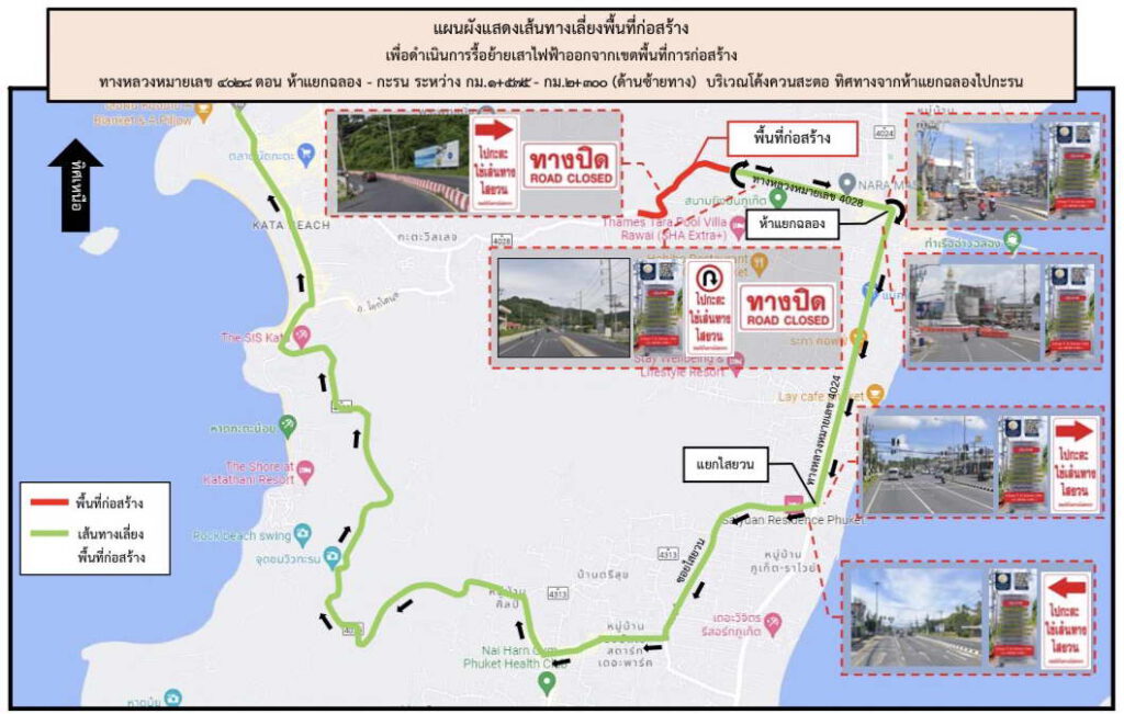 เนื่องจากการไฟฟ้าส่วนภูมิภาคตำบลฉลอง จะดำเนินการรื้อย้ายเสาไฟฟ้าออกจากเขตพื้นที่การก่อสร้าง บริเวณเนินควนสะตอ จึงต้องปิดการจราจรถนนปฏัก บริเวณจุดกลับรถห้างโกลบอลเฮ้าส์ ฝั่งฉลองไปกะรน(กะรนมาฉลอง ใช้ได้ปกติ) ในวันพุธ ที่ 31 ส.ค.65 ตั้งแต่เวลา 08.00-17.00 น เพื่อดำเนินการแล้วเสร็จ โดยให้ใช้เส้นทางถนนรอบเกาะ ไสยวน-กะตะ เป็นทางเลี่ยงในช่วงเวลาดังกล่าว