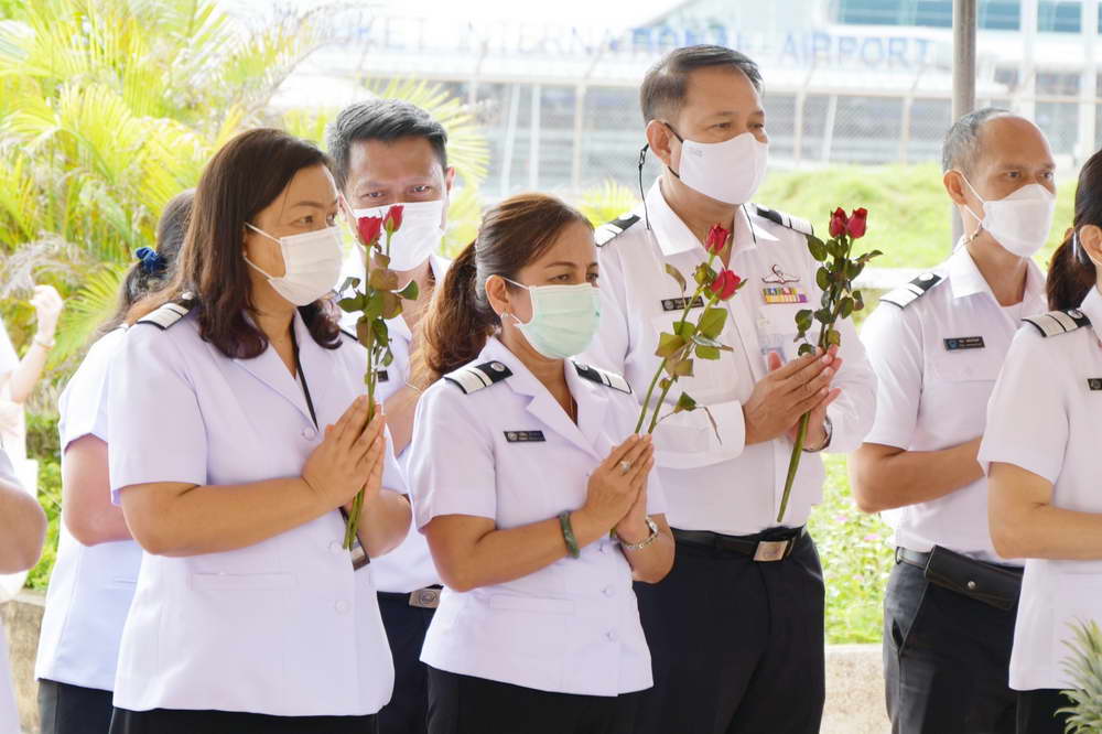 เมื่อวันที่ 6 ตุลาคม 2565 ที่ท่าอากาศยานภูเก็ต นายมนต์ชัย ตะโหนด ผู้อำนวยการท่าอากาศยานภูเก็ต (ผภก.), นางกัลยรัตน์ สุทธิพัฒนกิจ รองผู้อำนวยการท่าอากาศยานภูเก็ต สายสนับสนุนธุรกิจ (รภก.(สธ.)) และ นายมนัส โสธารัตน์ รองผู้อำนวยการท่าอากาศยานภูเก็ตสายปฏิบัติการและบำรุงรักษา (รภก.(ปร.)) นำคณะผู้บริหาร พนักงานและลูกจ้าง ท่าอากาศยานภูเก็ต