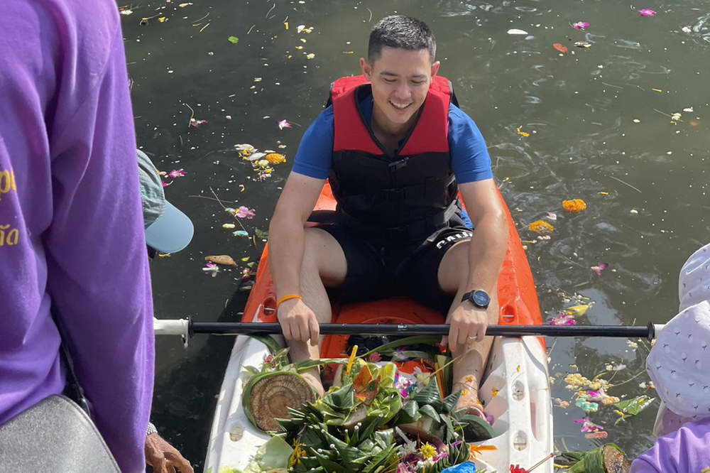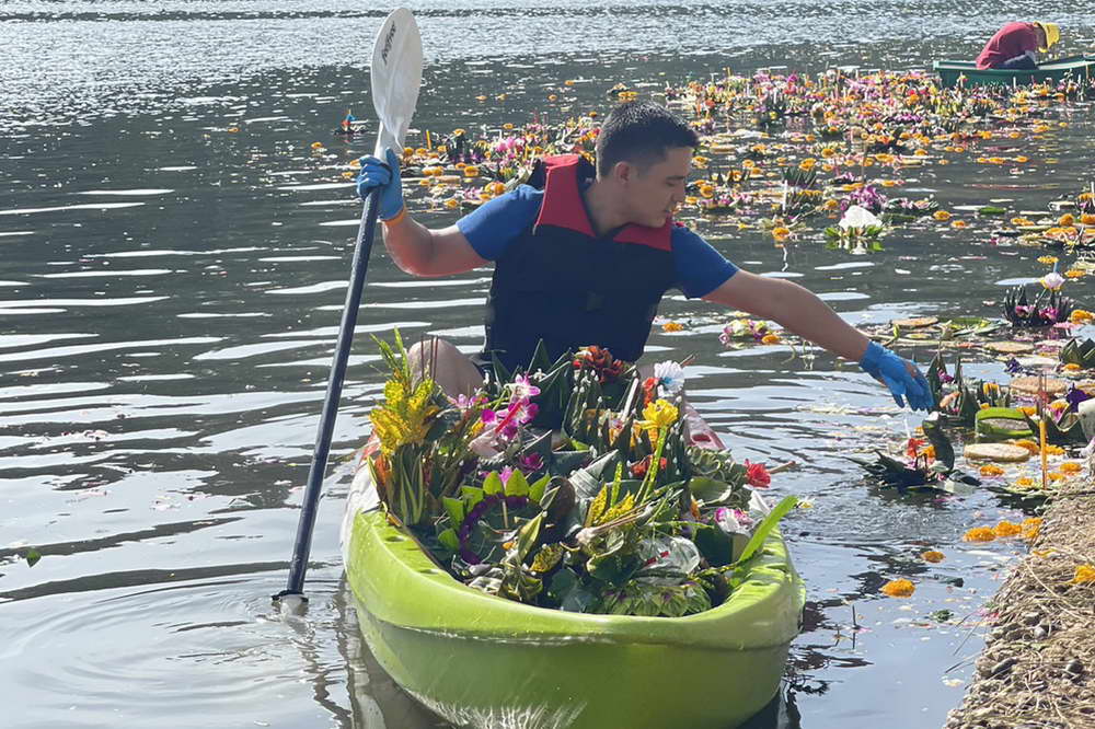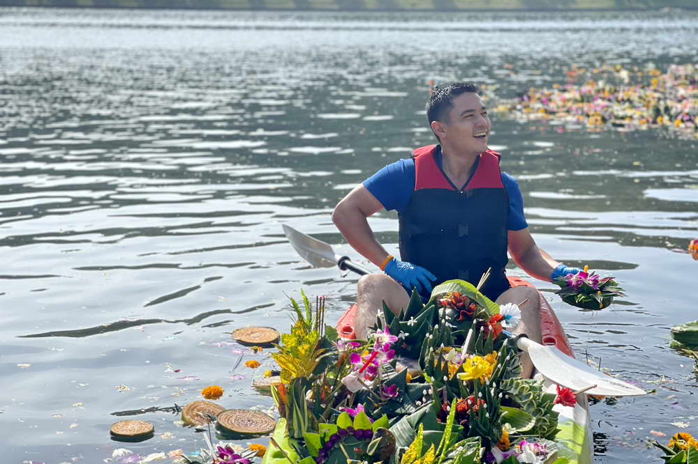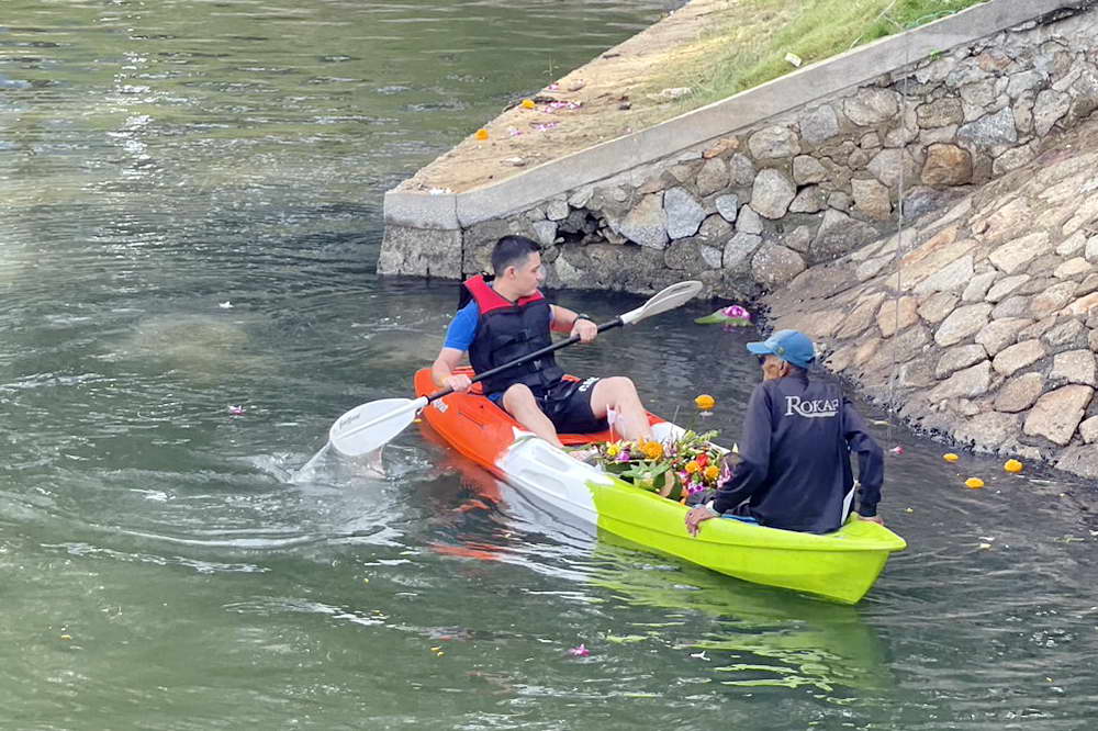 ในการนี้ทางนายเทมส์ ไกรทัศน์ หนึ่งในจิตอาสาได้นำเรือแคนนูมาช่วยเก็บกระทงด้วย เป็นส่วนหนึ่งในการสืบสานประเพณีที่มีมาแต่โบราณ ขณะเดียวกันยังเป็นส่วนหนึ่งในการร่วมกันรณรงค์สร้างจิตสำนึกดูแลสิ่งแวดล้อม เพราะแม้ว่าจะมีการใช้วัสดุจากธรรมชาติในการทำกระทง แต่มีส่วนประกอบที่เป็นนำตะปูหลากหลายขนาด ซึ่งส่วนนี้จะส่งผลกระทบกับสัตว์น้ำได้
