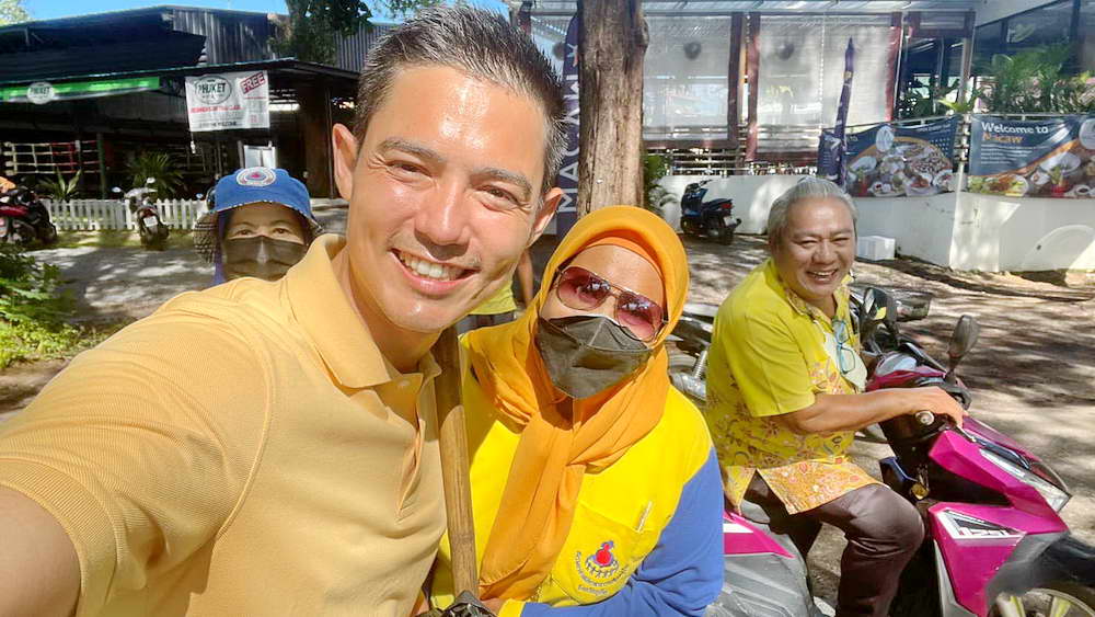หากเป็นคอการเมืองจะเห็นว่า ได้เสนอตัวอาสาทำงานเพื่อสังคมมาอย่างต่อเนื่อง ตั้งแต่ช่วงก่อนการแพร่ระบาดโควิด-19 จนปัจจุบัน รวมระยะเวลาไม่ต่ำกว่า 3 ปี ที่ประกาศตัวขอรับใช้พี่น้องชาวภูเก็ต โดยกิจกรรมกรรมที่เข้าร่วมบ่อยๆ และสอดคล้องกับนโยบายเพื่อภูเก็ต นั่นคือ การร่วมสร้างจิตสำนึกในการดุแลและรักษาสิ่งแวดล้อม