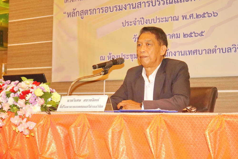 เมื่อวันที่ 7 ธันวาคม 2565 ห้องประชุมระเงง ชั้น 3 สำนักงานเทศบาลตำบลวิชิต นายวิเศษ สบายจิตต์ ที่ปรึกษานายกเทศมนตรีตำบลวิชิต เป็นประธานในพิธีเปิดการอบรมในโครงการฝึกอบรม เพื่อเพิ่มประสิทธิภาพการทำงานด้านกฎหมาย ระเบียบ และหนังสือสั่งการ “หลักสูตรการอบรมงานสารบรรณและการจัดทำหนังสือราชการ” ประจำปีงบประมาณ พ.ศ.2566 โดยมี นายธนวัฒน์ เทวเดช ปลัดเทศบาลตำบลวิชิต พร้อมด้วยหัวหน้าส่วนราชการ ข้าราชการ พนักงานเทศบาลตำบลวิชิตเข้าร่วม