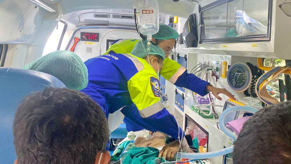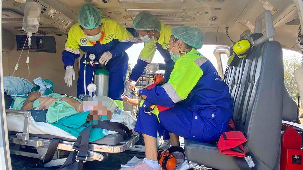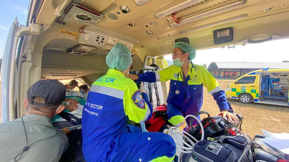 โดยประสานงานผ่าน พญ.ชนิดา เข็มเงิน แพทย์อำนวยการปฏิบัติการฉุกเฉิน (พอป.) ศูนย์นเรนทรอันดามัน กลุ่มงานเวชศาสตร์ฉุกเฉิน ขออนุมัติลำเลียงผู้ป่วยทางอากาศจากศูนย์นเรนทร สถาบันการแพทย์ฉุกเฉินแห่งชาติ ได้ดำเนินการประสานตำรวจภูธร ภาค 8 เพื่อขอสนับสนุนอากาศยานเฮลิคอปเตอร์ Bell 429 ใช้ทีมชุดปฏิบัติการลำเลียงทางอากาศ ของกลุ่มงานเวชศาสตร์ฉุกเฉิน โรงพยาบาลวชิระภูเก็ต ส่งต่อผู้ป่วยถึงที่หมายอย่างรวดเร็ว และปลอดภัย