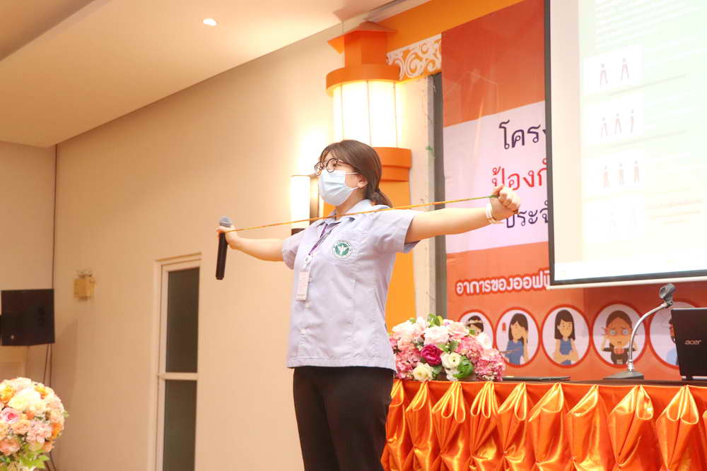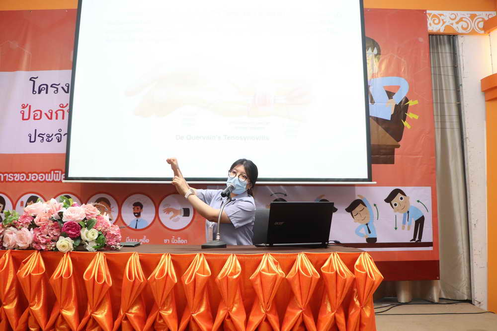 สำหรับการจัดกิจกรรมในครั้งนี้เพื่อให้ผู้ที่สนใจมีความรู้ ความเข้าใจแนวทางในการป้องกันการเกิดโรคออฟฟิศซินโดรม และได้เรียนรู้ท่าทางในการทำกายภาพบำบัดอย่างง่ายเพื่อลดโอกาสการเกิดโรคออฟฟิศซินโดรม โดยมีนางสาวปิยาพร เมฆารักษ์กุล นักกายภาพ โรงพยาบาลวชิระ หยี่เต้ง และนางสาวสุมัณฑนา สอนผลงาม นักกายภาพ พร้อมด้วยทีมงานจากคลินิกกายภาพบำบัด อ้อม ฟิสิโอ เป็นวิทยากรบรรยาย
