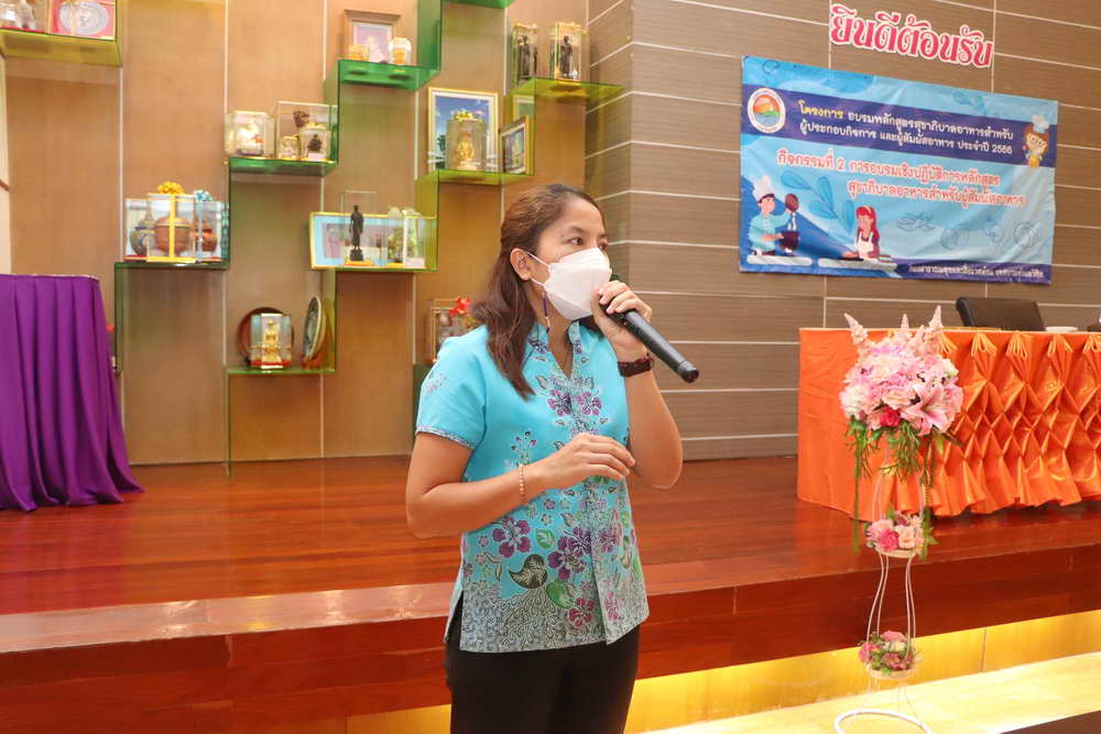 โดยในการดำเนินโครงการฯ วันที่ 26 มกราคม 2566 ที่ผ่านมา เป็นการจัดอบรมผ่านระบบออนไลน์แล้ว เป็นเวลา 3 ชั่วโมง ซึ่งในวันนี้จะเป็นการดำเนินการทดสอบความรู้ โดยผู้เข้าร่วมการอบรมทุกท่านต้องทำแบบทดสอบให้ผ่านร้อยละ 80 จึงจะถือว่าเป็นผู้สอบผ่านการอบรมตามหลักสูตร โดยผู้ผ่านการอบรมจะได้รับบัตรประจำตัวและประกาศนียบัตร มีอายุ 3 ปี โดยรายชื่อของผู้ที่ผ่านการอบรมจะถูกจัดเก็บที่กรมอนามัย กระทรวงสาธารณสุข และใช้ประกอบการพิจารณาอนุญาตจัดตั้งสถานที่จำหน่ายอาหารต่อไป