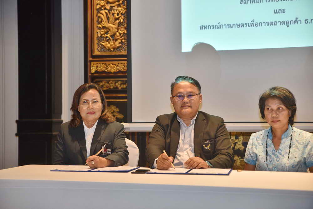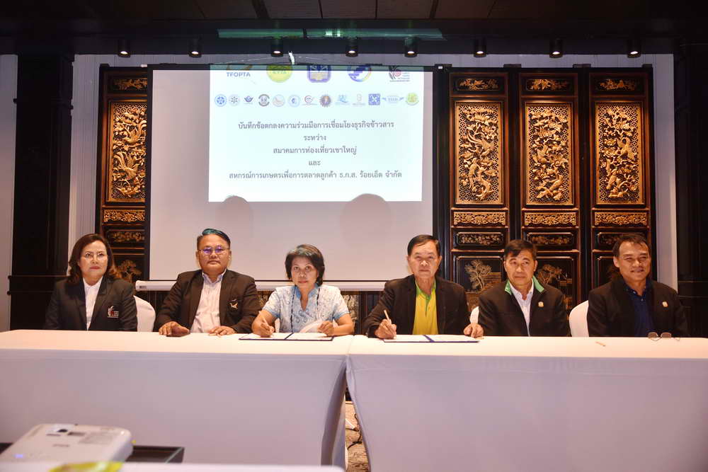 โดยมีนางวิรินทร์ตรา ปภากิจยศพัฒน์ ประธาน เขต 11 สภาอุตสาหกรรมท่องเที่ยวแห่งประเทศไทย, นายทองลักษณ์ หาญศึก ประธานสหกรณ์การเกษตรเพื่อการตลาดลูกค้า ธกส ร้อยเอ็ด จำกัด, ว่าที่ร้อยตรีเอนก นุรักษ์ ประธาน สมาพันธ์ธุรกิจท่องการท่องเที่ยวส่วนภูมิภาคแห่งประเทศไทย และนายบุญมา กุลชาติ ธนาคารเพื่อการเกษตรและสหกรณ์ ร่วมลงนาม