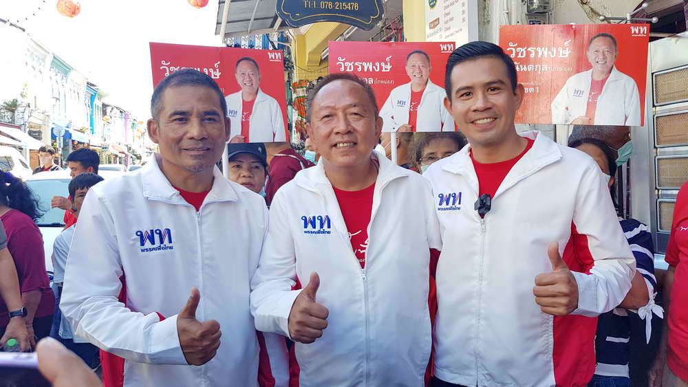 และว่าที่ผู้สมัคร ส.ส.พรรคเพื่อไทยทั้ง 3 เขต ของจังหวัดภูเก็ต ประกอบด้วยนายวัชรพงษ์ อนันตกูล อดีตรองนายกเทศมนตรีนครภูเก็ต, นายสรธรรม จินดา อดีต รองนายก อบจ.ภูเก็ต และนายอาวุธ หนูเชต อดีตเลขาธิการมูลนิธิพัฒนาป่าตอง ลงพื้นที่พบปะกับประชาชนในพื้นที่ย่านเมืองเก่าภูเก็ต เพื่อสอบถามถึงสถานการณ์เศรษฐกิจ การค้าขายและสถานการณ์การท่องเที่ยว หลังการแพร่ระบาดโรคโควิด-19 โดยได้รับการตอบรับจากประชาชนในพื้นที่ที่มารอต้อนรับจำนวนมาก