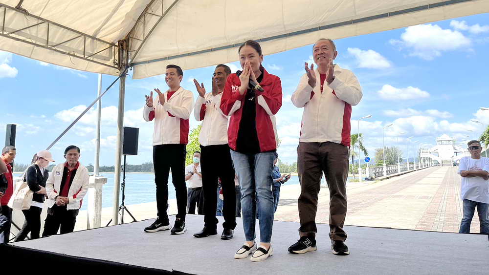 อย่างไรก็ตามหลังจากนั้นได้มีการเปิดเวทีปราศรัยย่อยขึ้นที่บริเวณสะพานสารสิน อ.ถลาง จ.ภูเก็ต เพื่อนำเสนอนโยบายต่อผู้ให้การสนับสนุน และแนะนำว่าที่ผู้สมัครทั้ง 3 เขตเลือกตั้ง ประกอบด้วยนายวัชรพงษ์ อนันตกูล อดีตรองนายกเทศมนตรีนครภูเก็ต, นายสรธรรม จินดา อดีต รองนายก อบจ.ภูเก็ต และนายอาวุธ หนูเชต อดีตเลขาธิการมูลนิธิพัฒนาป่าตอง โดยได้มีการขอคะแนนเสียงในการเลือกตั้งครั้งนี้ให้แลนด์สไลด์ โดยนางสาวแพทองธาร ได้กล่าวฝากพรรคเพื่อไทยให้อยู่ในอ้อมใจของทุกคน ขอเพื่อไทยแลนด์สไลด์ในภาคใต้