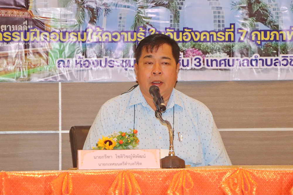 เมื่อวันที่ 7 กุมภาพันธ์ 2566 ที่ห้องประชุมระเงง ชั้น 3 เทศบาลตำบลวิชิต นายกรีฑา โชติวิชญ์พิพัฒน์ นายกเทศมนตรีตำบลวิชิต เป็นประธานเปิดโครงการฝึกอบรมเพื่อเพิ่มศักยภาพผู้นำมุสลิมและผู้นำชุมชนในตำบลวิชิต ประจำปีงบประมาณ พ.ศ.2566 โดยมีฝ่ายบริหาร สมาชิกสภาเทศบาล หัวหน้าส่วนราชการ ผู้นำศาสนา และผู้นำชุมชนเข้าร่วม โดยมีนายอิมรอน สะมะนิ ผู้อำนวยการโรงเรียนตาริกทิพยพีฒน์ เป็นวิทยากรบรรยาย