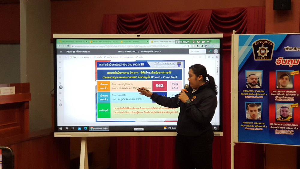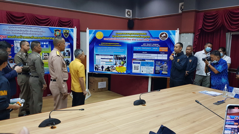 ขณะที่การดำเนินการกับเจ้าของที่พักหลังจากจับกุมคนต่างด้าวกระทำความผิดอาญา ได้บูรณาการร่วมกันติดตามจับกุม แก๊งค์คนต่างด้าว สัญชาติมองโกเลีย ร่วมกันลักทรัพย์นักท่องเที่ยวบริเวณป่าตอง และ ถนนคนเดิน และเชิญเจ้าของที่พักมาทำบันทึกตักเตือนให้ปฏิบัติตามกฎหมายโดยเคร่งครัด รวมทั้งยังได้รับความร่วมมือจากโรงเรียนเอกชนนอกระบบ (โรงเรียนสอนภาษากะทู้) ในการจับกุมผู้ต้องหาสัญชาติสวีเดน ตามหมายแดง INTERPOL ส่วนการดำเนินการตามโครงการ Traffy Fondue มีการร้องเรียนจำนวน 3 เรื่องดำเนินการเสร็จสิ้น 2 เรื่อง และอยู่ระหว่างสืบสวนเพิ่มเติม 1 เรื่อง