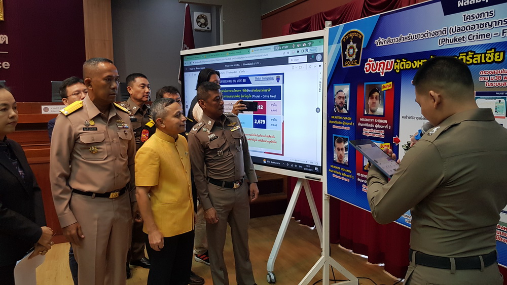 สำหรับโครงการนี้ เป็นการขับเคลื่อนวิสัยทัศน์ของ ผบ.ตร. (เป็นตำรวจมืออาชีพ ทำงานเชิงรุก เพื่อความสงบสุขของประชาชน) มาสู่การปฏิบัติในรูปแบบของโครงการฯ ในห้วงเดือนที่ผ่านมา สามารถจับกุมผู้ต้องหาสัญชาติรัสเซีย ร่วมกันปล้นเงินคริปโต จำนวน 2 ราย จากข้อมูลการแจ้งที่พัก ตาม ม.38 พ.ร.บ.คนเข้าเมืองฯ ซึ่งในระหว่างเดือน ต.ค.65 – ก.พ.66 มีสถิติการแจ้งที่พัก (1,515,650 ราย) สูงกว่าสถิติเดินทางเข้า ทางด่านท่าอากาศยานนานาชาติภูเก็ต (1,269,854 ราย) เหตุที่ตัวเลขสูงกว่าที่แจ้งเข้า เนื่องจากบางส่วนเดินทางมาจากกรุงเทพมหานครหรือจังหวัดอื่นๆ