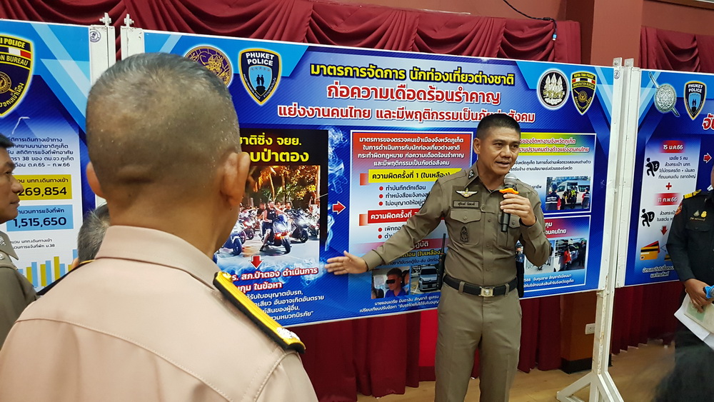 เมื่อวันที่ 1 มีนาคม 2566 ที่ห้องประชุมชั้น 3 กองบังคับการตำรวจภูธรจังหวัดภูเก็ต นายอานุภาพ รอดขวัญ ยอดระบำ รองผู้ว่าราชการจังหวัดภูเก็ต พร้อมด้วยพล.ร.ต.ณัฐพงค์ ญาโณทัยขจิตต์ รอง ผอ.รมน.จวภูเก็ต, พล.ต.ต.เสริมพันธุ์ ศิริคง ผบก.ภ.จว.ภูเก็ต, พล.ต.ต.ประพันธ์ศักดิ์ ประสานสุข ผบก.ตม.6, พ.ต.อ.ธเนศ สุขชัย ผกก.ตม.จว.ภูเก็ต และหน่วยงานที่เกี่ยวข้อง อาทิ สำนักงานขนส่งจังหวัดภูเก็ต, ศึกษาธิการจังหวัดภูเก็ต เป็นต้น และตัวแทนจากสมาคมธุรกิจการท่องเที่ยวจังหวัดภูเก็ต
