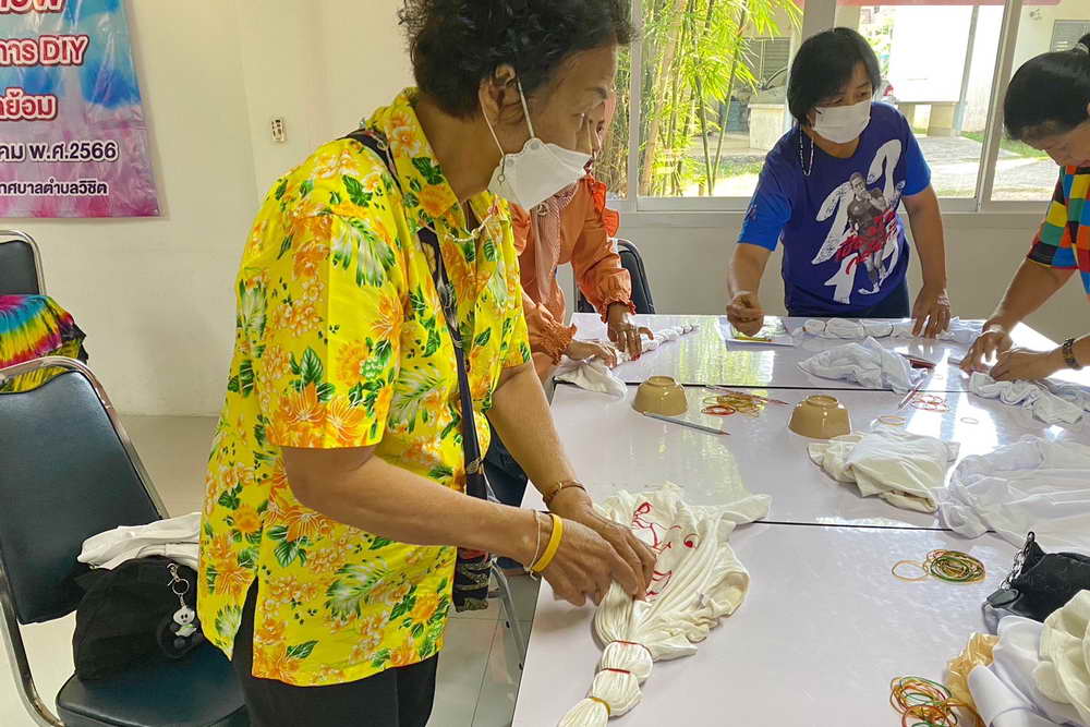 ในระหว่างวันที่ 9 – 11 มีนาคม 2566 ที่ผ่านมา ที่ศูนย์อเนกประสงค์ผู้สูงอายุและศูนย์พักกายใจ ณ เขาล้อม เทศบาลตำบลวิชิต กองสวัสดิการสังคม เทศบาลตำบลวิชิต จัดกิจกรรมการทำผ้ามัดย้อม และการ DIY เสื้อเก่าด้วยวิธีมัดย้อม ในโครงการสานพลังสตรีตำบลวิชิต ประจำปีงบประมาณ พ.ศ.2566 โดยมีสตรีในพื้นที่ตำบลวิชิตเข้าร่วม เพื่อเป็นการเสริมสร้างอาชีพทางเลือกให้กลุ่มเป้าหมาย ได้นำความรู้ที่ได้ไปประยุกต์ใช้ในชีวิตประจำวัน และต่อยอดเป็นอาชีพได้ในอนาคต