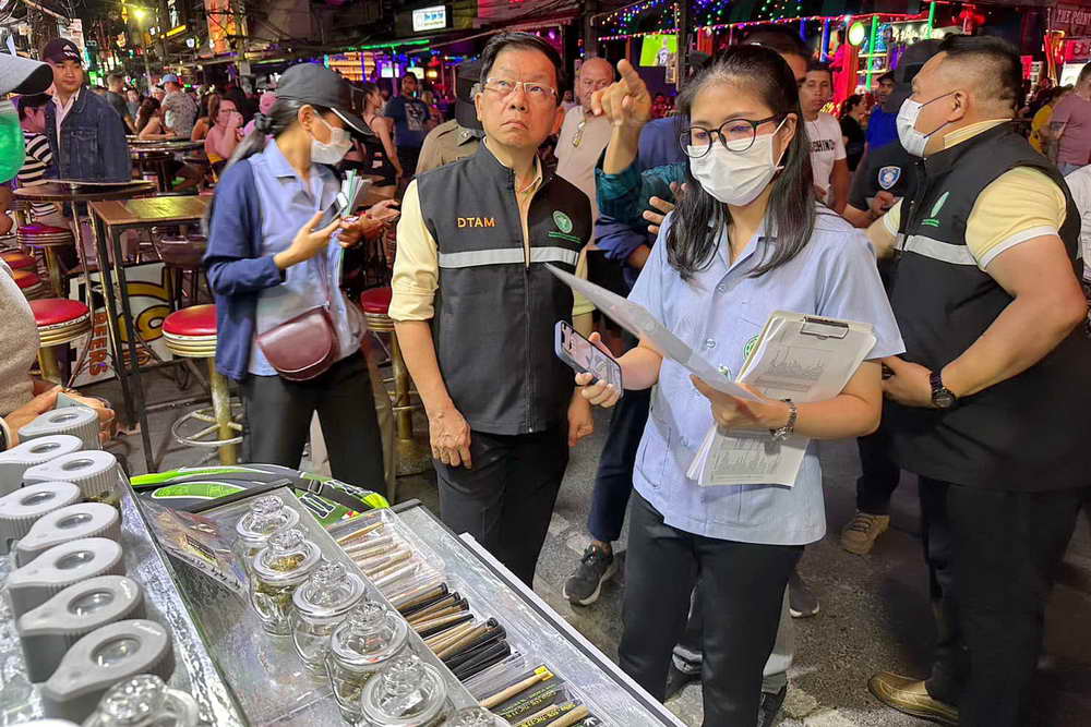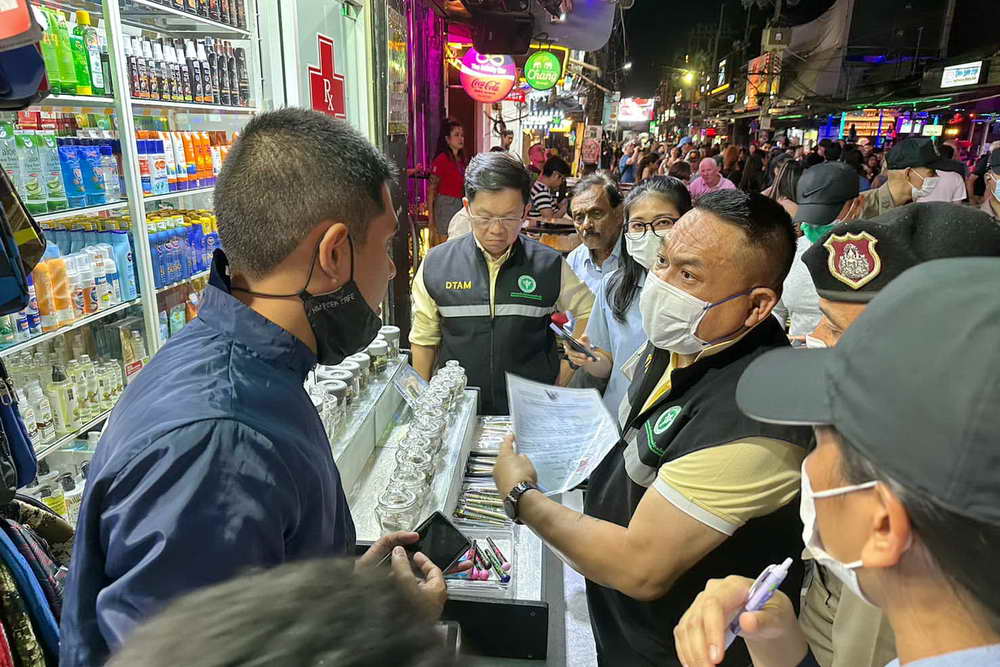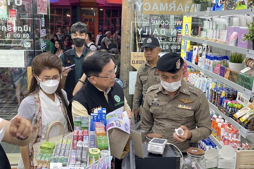 เมื่อวันที่ 13 มีนาคม 2566 ภายในซอยบางลา และแสนสบาย ต.ป่าตอง อ.กะทู้ ภูเก็ต นพ.ธงชัย เลิศวิไลรัตนพงศ์ อธิบดีกรมการแพทย์แผนไทย พร้อมด้วย นพ.เทวัญ ธานีรัตน์ รองอธิบดีกรมการแพทย์แผนไทย นายสมนึก ฮาเส็ม หัวหน้ากลุ่มงานคุ้มครองผู้บริโภคและเภสัชสาธารณสุข สำนักงานสาธารณสุขจังหวัดภูเก็ต ร่วมกับ