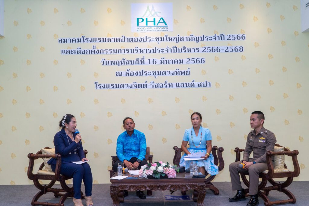 อย่างไรก็ตามก่อนเข้าสู่วาระการประชุม และเลือกตั้งคณะกรรมการชุดใหม่ ได้มีการสนทนา เรื่อง “ทิศทางเมืองป่าตองในปี 2566” โดยนายเฉลิมศักดิ์ มณีศรี นายกเทศมนตรีเมืองป่าตอง, นางจุลจิรา ธีรชิตกุล ผู้อำนวยการกองสาธารณสุขและสิ่งแวดล้อม และ พ.ต.ท. ภูมิ สมวรนนท์ รอง ผกก. (สอบสวน) หน.จราจร สภ.ป่าตอง ซึ่งได้มีการพูดถึงแนวทางการพัฒนาป่าตอง ซึ่งพบว่าทางเทศบาลฯ ได้มีการจัดทำโครงการต่างๆ เพื่อรองรับการเติบโตของการท่องเที่ยว