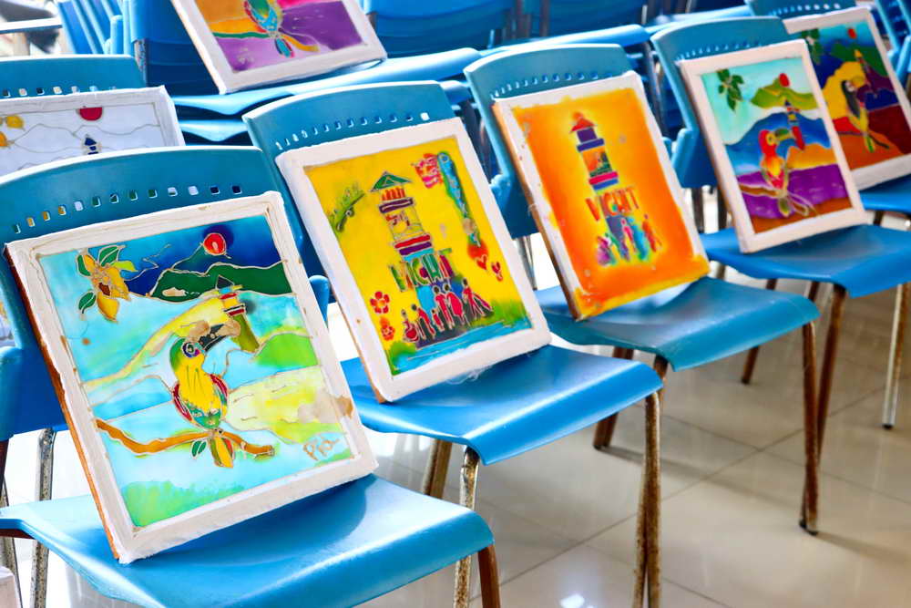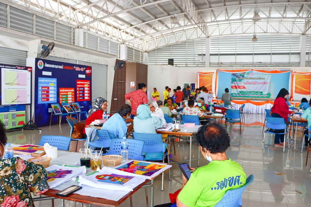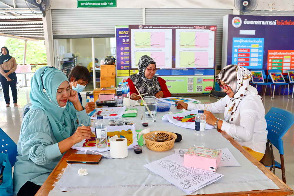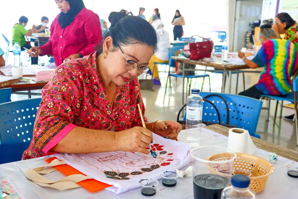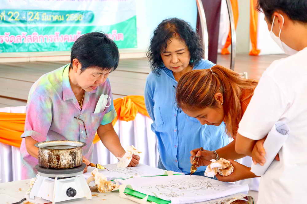 ซึ่งได้มีการบรรยายให้ความรู้เกี่ยวกับ “การเพ้นท์ผ้าบาติกและแนะนำอุปกรณ์/ขั้นตอน” พร้อมแบ่งกลุ่มฝึกปฏิบัติ “การเพ้นท์ผ้าบาติกลงบนผ้าป่านมัสลิน และการเพ้นท์ผ้าบาติกลงบนกระเป๋าผ้าขาว” โดยวิทยากรจากร้านยิ่งบาติกเพ้นท์ พร้อมทีมงาน มาเป็นวิทยากรบรรยายและฝึกสอนการเพ้นท์