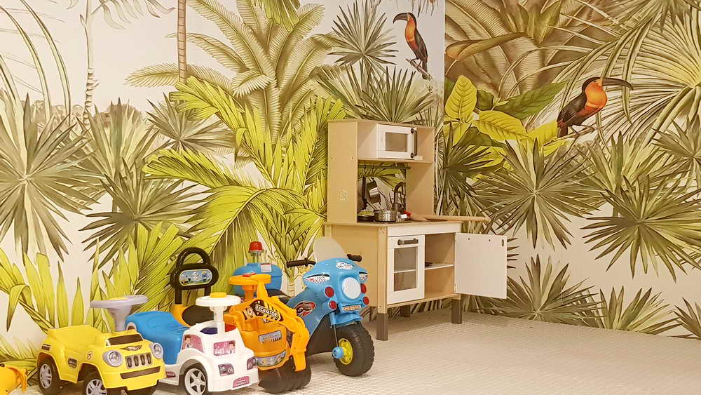 ในโซนแรก อยู่บริเวณชั้น 1 นอกจากจะเป็นล็อบบี้เพื่อรอต้อนรับลูกค้าแล้ว ยังมีมุมคาเฟ่ไว้บริการอาหารและเครื่องดื่มหลากหลายเมนู ถัดไปเล็กน้อยจะเป็นบ่อบอล มุมปาร์ตี้ และมุมถ่ายภาพสำหรับเด็กๆ ซึ่งให้บริการฟรีสำหรับผู้ที่มาใช้บริการคาเฟ่