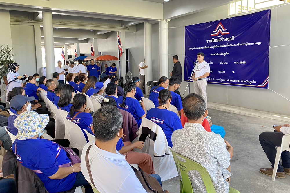 เมื่อวันที่ 24 มีนาคม 2566 ที่ผ่านมา ที่บ้านเลขที่ 99/12 หมู่ 1 ต.ศรีสุนทร อ.ถลาง จ.ภูเก็ต พรรครวมไทยสร้างชาติ ภูเก็ต จัดประชุมเพื่อแสดงความคิดเห็นต่อผู้สมัครรับเลือกตั้งเป็นสมาชิกสภาผู้แทนราษฎร ประจำจังหวัดภูเก็ต แบบแบ่งเขตเลือกตั้ง มี 3 เขตเลือกตั้ง