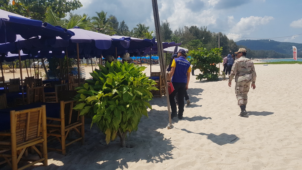 นายบัญชา ธนูอินทร์ นายอำเภอถลาง กล่าวว่า การลงพื้นที่ในครั้งนี้ เป็นการดำเนินการของคณะกรรมการจัดระเบียบชายหาดระดับอำเภอ ซึ่งบูรณาการกำลังร่วมกับหน่วยต่างๆ ที่เกี่ยวข้อง อาทิ ทหาร ตำรวจ ฝ่ายปกครอง ท้องถิ่น ที่ดิน เจ้าท่าฯ เป็นต้น เป็นไปตามคำสั่งคณะกรรมการจัดระเบียบชายหาดจังหวัด ให้มีการตรวจชายหาดในความรับผิดชอบอย่างน้อยเดือนละ 1-2 ครั้ง
