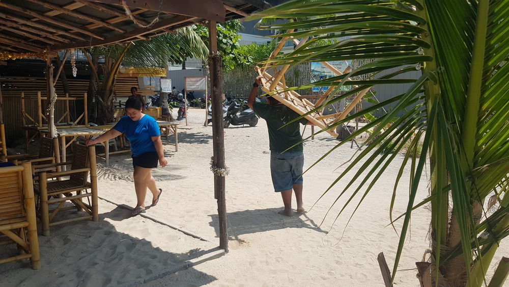 จากการลงพื้นที่ พบว่ายังมีผู้บุกรุกเข้าไปปลูกสิ่งปลูกสร้างกึ่งถาวรทำเป็นร้านอาหารให้บริการนักท่องเที่ยว และมีบริการร่มเตียงผ้าใบ ซึ่งขณะนั้นพบว่า มีนักท่องเที่ยวชาวต่างชาติเช่าเตียงเพื่อนอนพักผ่อนอาบแดด โดยพบเพียงพนักงานดูแลประจำร้าน เจ้าหน้าที่ฯ จึงได้ชี้แจงทำความเข้าใจและให้ทำการรื้อถอนสิ่งปลูกสร้างออกทั้งหมด รวมถึงงดการให้บริการร่มเตียงผ้าใบ ขณะเดียวกันก็ให้มีการรื้อเสาสำหรับพาดสายไฟที่ประดับโดยรอบออกด้วย ซึ่งได้นับความร่วมมือเป็นดี
