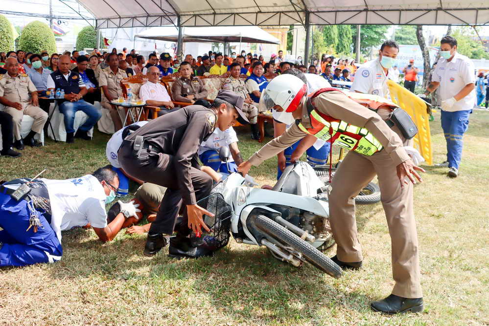อีกทั้งยังมีมาตรการป้องกันและลดอุบัติเหตุทางถนนด้วยกันทั้งหมด 5 มาตรการ ได้แก่ ด้านการบริหารจัดการ ด้านลดปัจจัยเสี่ยงด้านถนนและสภาพแวดล้อม ด้านลดปัจจัยเสี่ยงด้านยานพาหนะ ด้านผู้ใช้รถใช้ถนนอย่างปลอดภัย และด้านการช่วยเหลือหลังเกิดอุบัติเหตุ โดยก่อนพิธีเปิดโครงการฯ ได้มีการสาธิตจำลองเหตุการณ์การเข้าช่วยเหลือผู้ประสบอุบัติเหตุ