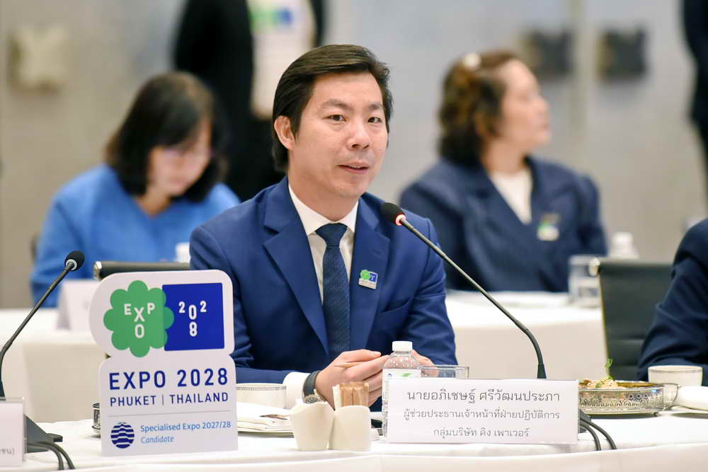 นายอภิเชษฐ์ ศรีวัฒนประภา ผู้ช่วยประธานเจ้าหน้าที่ฝ่ายปฏิบัติการ กลุ่มบริษัท คิง เพาเวอร์ กล่าวว่า “จากการที่ทางรัฐบาลและหน่วยงานภาครัฐ ซึ่งประกอบไปด้วย กระทรวงการต่างประเทศ กระทรวงสาธารณสุข กระทรวงพาณิชย์ จังหวัดภูเก็ต สำนักงานส่งเสริมการจัดประชุมและนิทรรศการ (องค์การมหาชน) การท่องเที่ยวแห่งประเทศไทย และหน่วยงานภาคเอกชน ได้กำหนดให้จังหวัดภูเก็ตเสนอตัวเป็นเจ้าภาพจัดงาน EXPO 2028 PHUKET THAILAND “Future of Life : Living in Harmony, Sharing Prosperity”