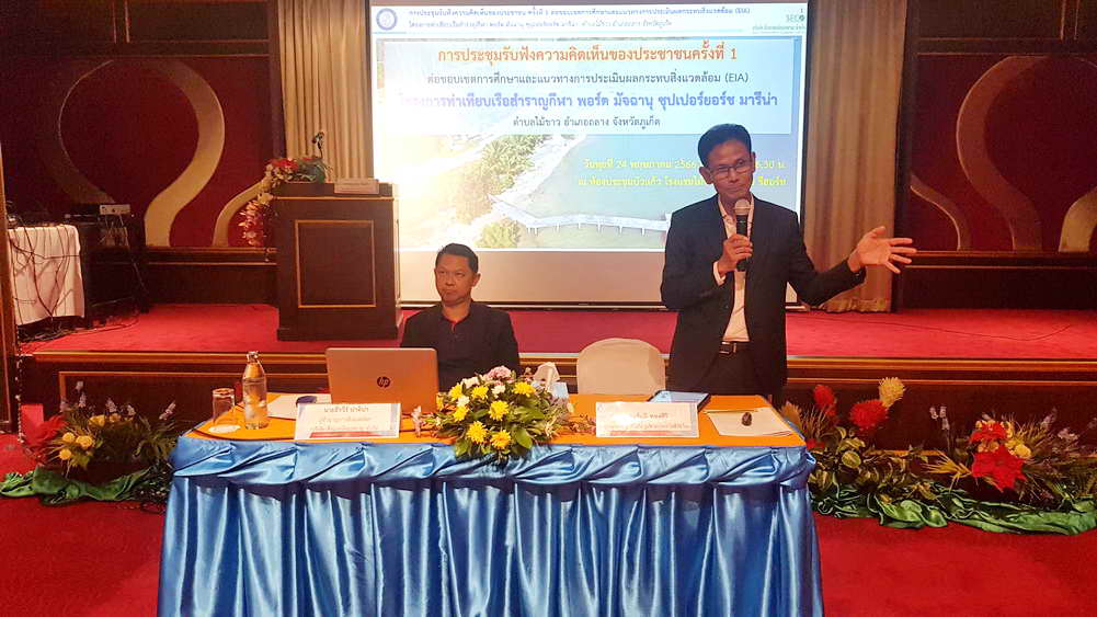 ซึ่งมีบริษัท ภูเก็ต ซุปเปอร์ยอร์ช มารีน่า จำกัด เป็นเจ้าของ และได้ว่าจ้างบริษัทสิ่งแวดล้อม สยาม จำกัด เป็นผู้ดำเนินการจัดประชุมรับฟังความคิดเห็น โดยมีนายบัญชา ธนูอินทร์ นายอำเภอถลาง หน่วยงานราชการที่เกี่ยวข้อง ทั้งในส่วนของพื้นที่ จ.ภูเก็ต และ พังงา ตลอดจนผู้นำชุมชน และประชาชนผู้มีส่วนได้ส่วนเสียเข้าร่วมนำเสนอความคิดเห็น