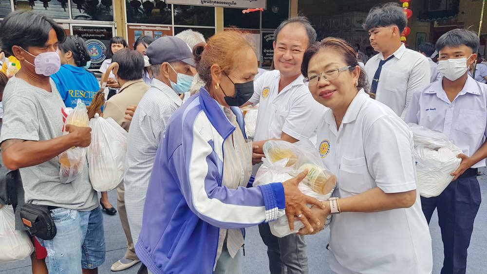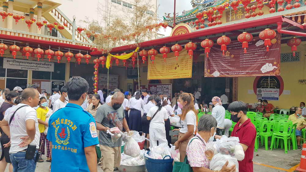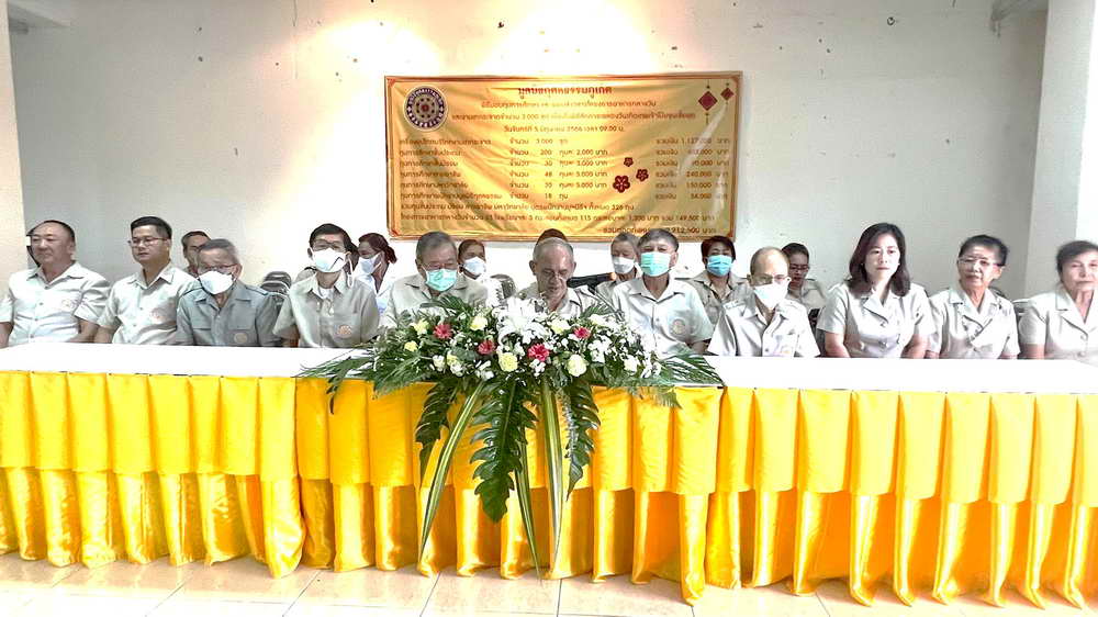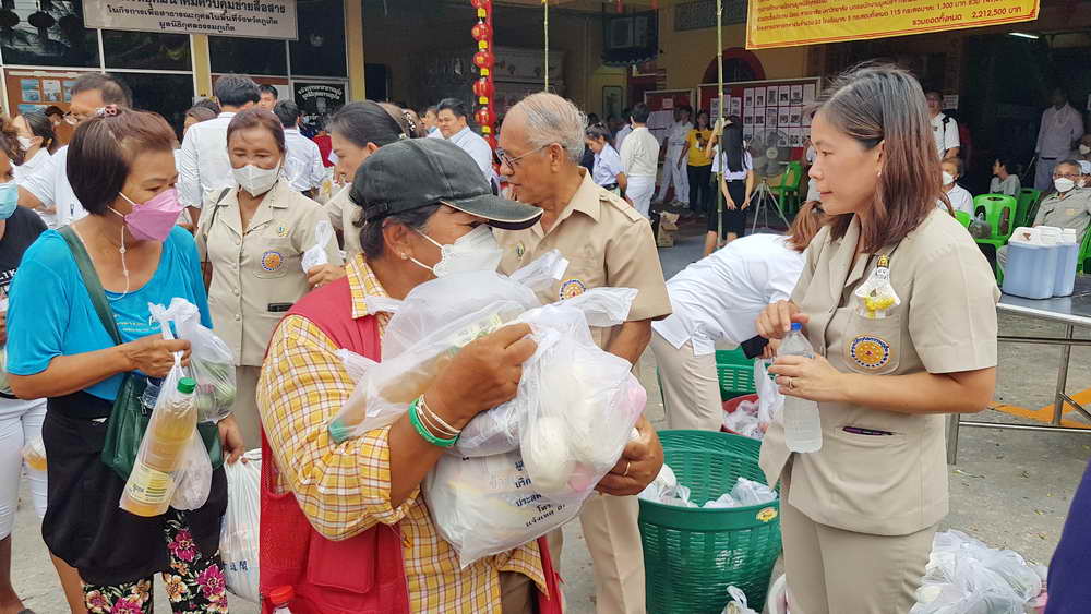 นอกจากนี้ยังมีการมอบข้าวสาร เพื่อสนับสนุนโครงการอาหารกลางวันให้แก่โรงเรียนจำนวน 23 โรงเรียนๆ ละ 5 กระสอบ รวมเป็นเงิน 149,000 บาท นอกจากนี้ในช่วงบ่ายวันเดียวกัน ทางมูลนิธิยังได้ประกอบพิธีเซ่นไหว้ดวงวิญญาณของบรรพบุรุษที่ล่วงลับไปแล้ว และพิธีเทกระจาด แจกถุงยังชีพให้กับผู้ยากไร้ จำนวน 3,000 ชุด รวมเป็นเงิน 1,127,000 บาท