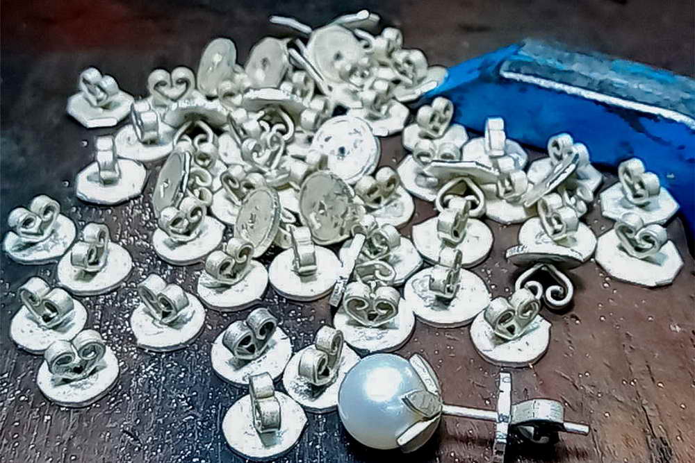 “ต่างหูมุก” ความพิเศษของชิ้นงานนี้อยู่ที่ก้านต่างหู ที่แข็งแรงและมีความทนทานเป็นพิเศษ ต่างจากก้านต่างหูโดยทั่วไป ทำให้สามารถใช้งานได้อย่างยาวนาน