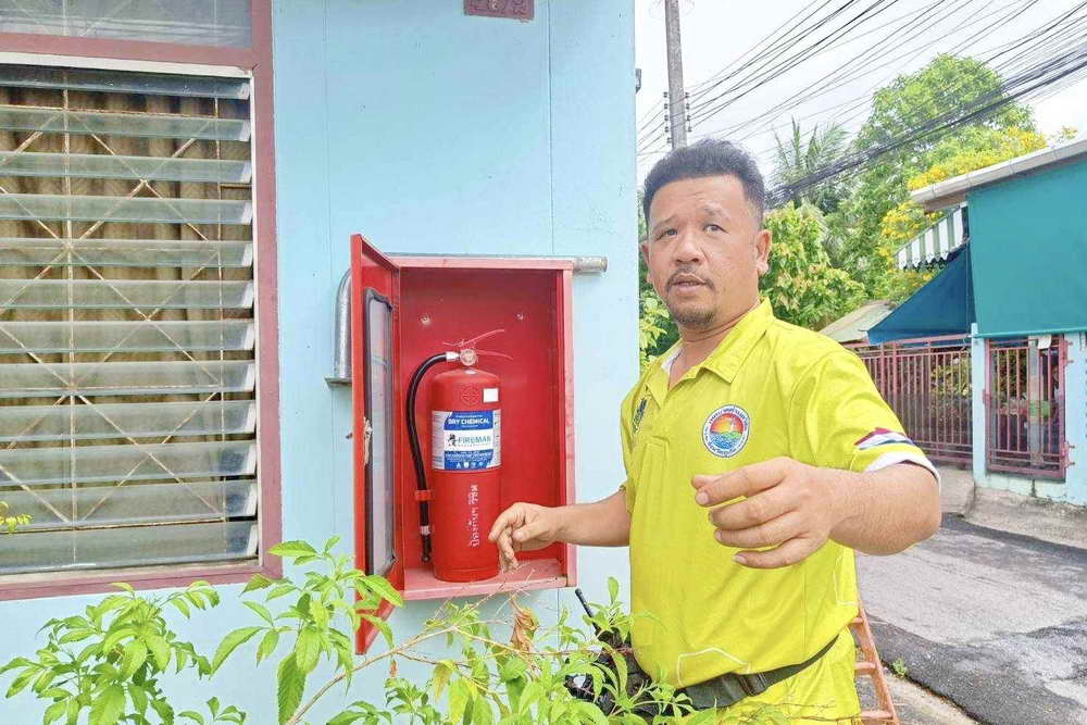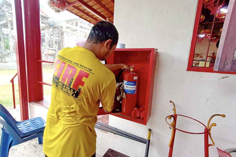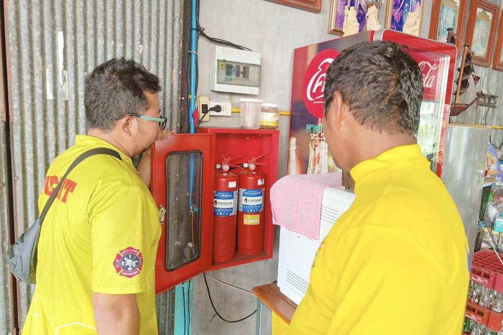 เจ้าหน้าที่งานป้องกันฯ ทต.วิชิต ลงพื้นที่ตรวจสภาพถังดับเพลิงประจำจุดต่างๆ