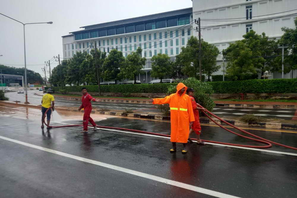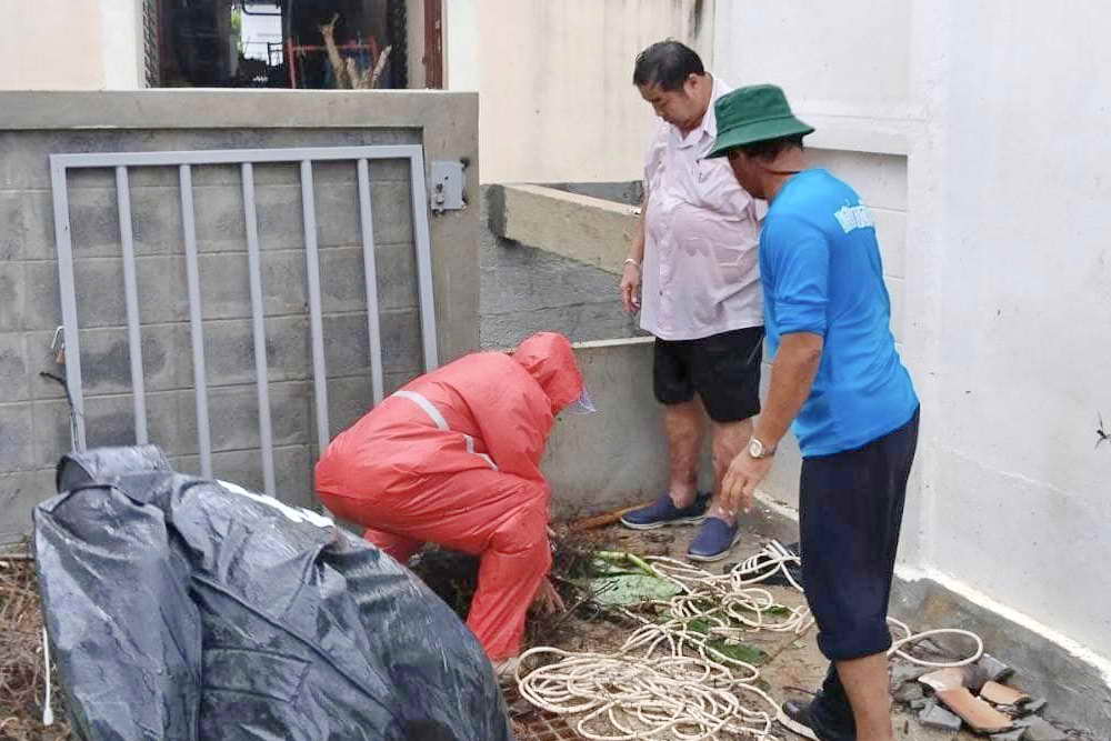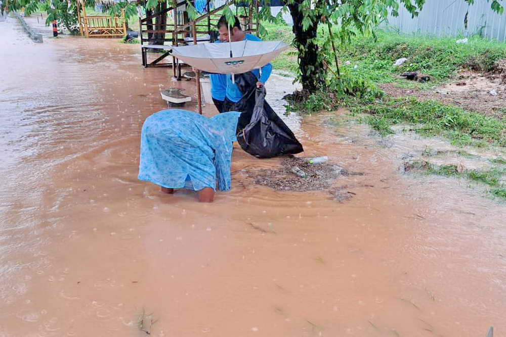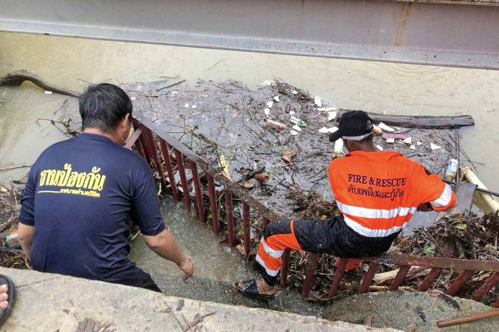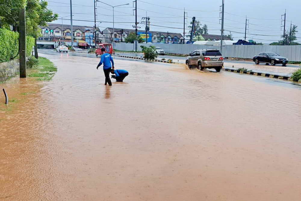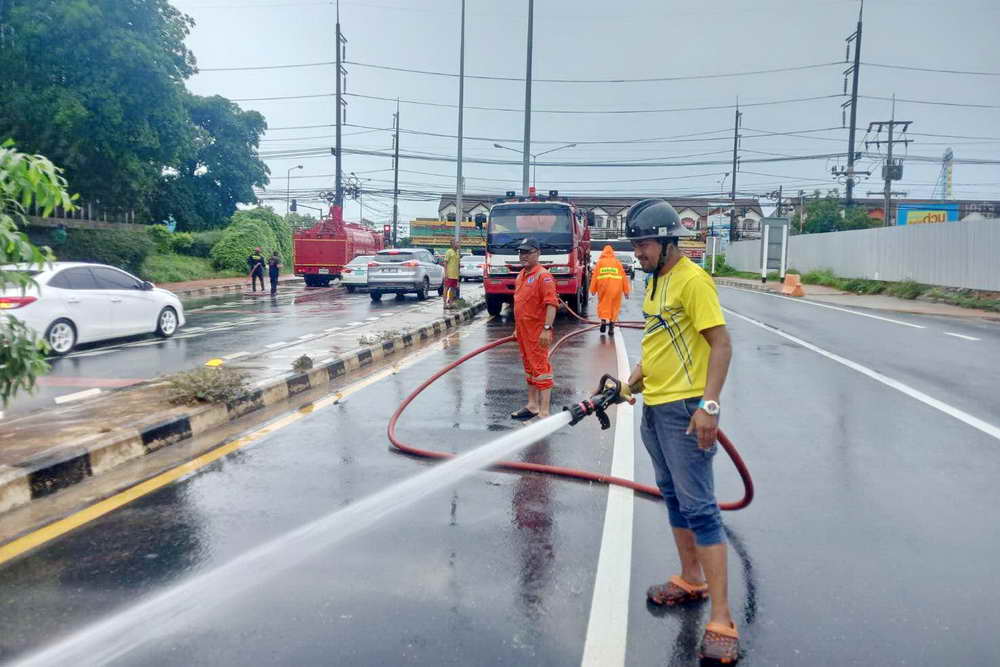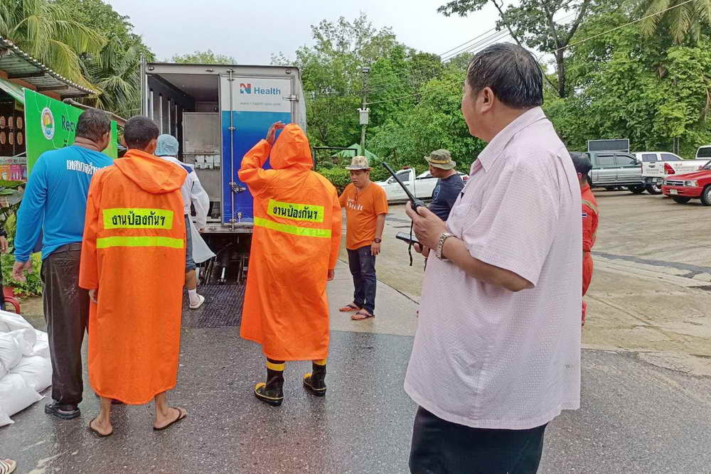 เจ้าหน้าที่งานป้องกันฯ และเจ้าหน้าที่กองช่างจึงเร่งนำกระสอบทรายแจกจ่ายให้แก่ประชาชนที่ได้รับความเดือดร้อนจากเหตุอุทกภัย ได้แก่ หมู่บ้านเจ้าฟ้า ซอยทุ่งเจริญ หมู่บ้านวิลล่า 3 หมู่บ้านแหลมทอง ซอยรวมสิน รวมทั้งเฝ้าดูระดับน้ำ เร่งนำขยะออกจากฝาท่อระบายน้ำ ลำรางน้ำ เพื่อให้น้ำลดลงได้เร็วขึ้นและเมื่อน้ำลดลงแล้ว ได้ฉีดล้างทำความสะอาดเศษดินบนถนน บริเวณถนนเหมืองเจ้าฟ้า