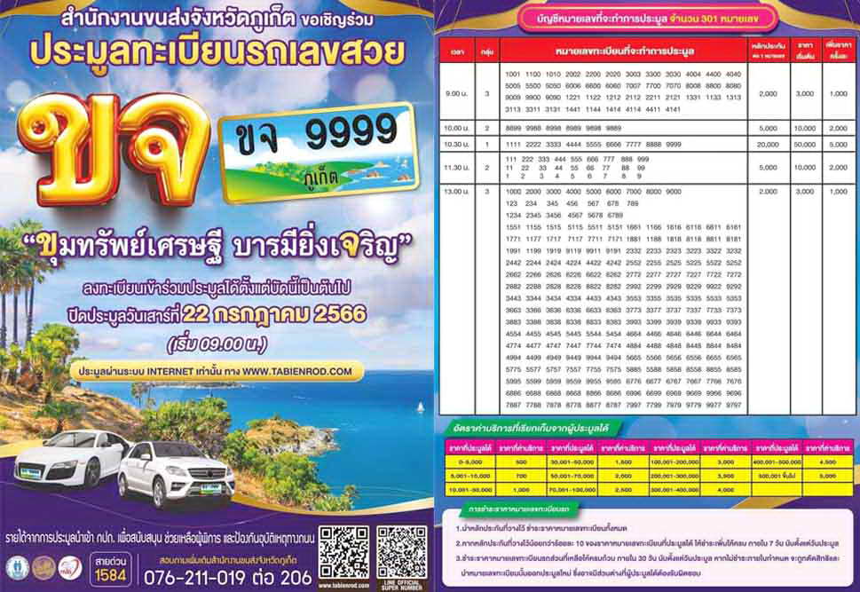 ขนส่งจังหวัดภูเก็ต รณรงค์เชิญชวนร่วมประมูลป้ายเลขสวย หมวด ขจ