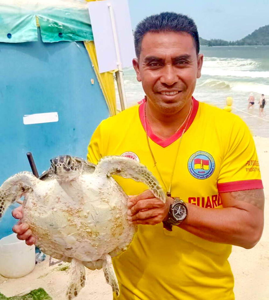 หลังรับแจ้ง ทางเจ้าหน้าที่ศูนย์ช่วยชีวิตสัตว์ทะเลหายากสิรีธาร สังกัดศูนย์วิจัยทรัพยากรทางทะเลและชายฝั่งทะเลอันดามันตอนบน(ศวอบ.) ก็ได้เดินทางไปบริเวณหาดป่าตอง ตำบลป่าตอง อำเภอกะทู้ จังหวัดภูเก็ต เพื่อตรวจสอบ พบเป็นเต่าตนุ (Chelonia mydas) อยู่ในช่วงวัยเด็ก ความยาวกระดอง 35.5 เซนติเมตร ความกว้างกระดอง 33.5 เซนติเมตร น้ำหนัก 3.8 กิโลกรัม