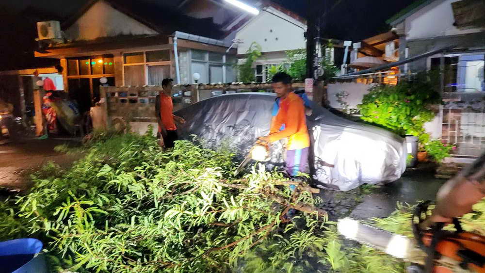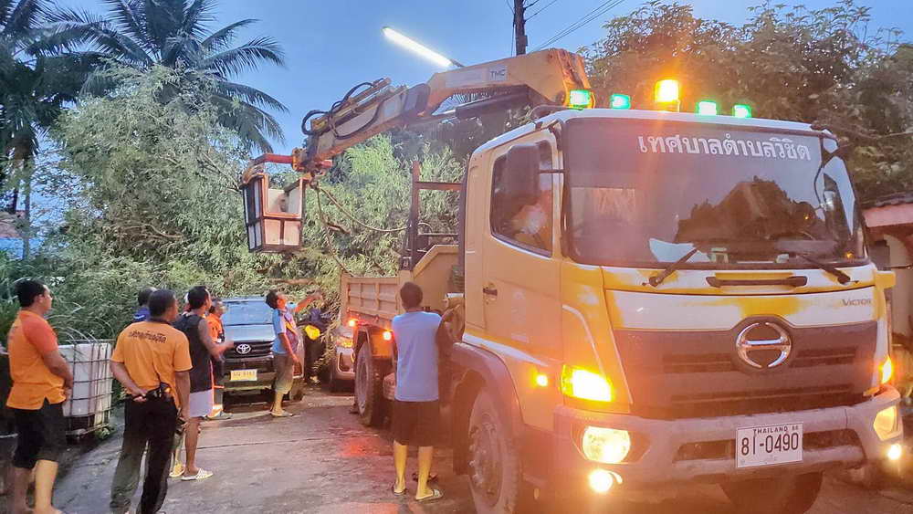 ซึ่งทางเจ้าหน้าที่ก็ได้เคลื่อนย้ายต้นไม้ออกจากพื้นที่ บริเวณหมู่บ้านติวราธานี หมู่ที่ 3 ตำบลวิชิต อ.เมืองภูเก็ต จังหวัดภูเก็ต ทั้งนี้เนื่องจากเมื่อเวลาประมาณ 17.00 น. เกิดฝนตกหนักลมกระโชกแรง ส่งผลให้ต้นไม้หักโค่นลงมาทับบ้าน และรถยนต์ ของชาวบ้านได้รับความเสียหาย