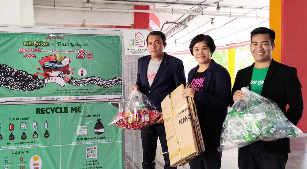 สำหรับโครงการ “โค้ก ชวนแยก แลกลุ้นโชค กับ Trash Lucky” ก้าวสู่ปีที่ 3 โดยกลุ่มธุรกิจโคคา-โคล่า ในประเทศไทย ประกอบด้วย บริษัท ไทยน้ำทิพย์ คอร์ปอเรชั่น จำกัด บริษัท หาดทิพย์ จำกัด (มหาชน) และ บริษัท โคคา-โคล่า (ประเทศไทย) จำกัด ร่วมกับ แทรชลัคกี้ โดยในปีนี้ขยายความร่วมมือกับพันธมิตรองค์กรชั้นนำทั้งพันธมิตรรีเทลเดิม เข้าร่วมแคมเปญเพื่อเพิ่มจุดรับวัสดุรีไซเคิล 64 จุดทั่วกรุงเทพฯ และนำร่องขยายมายังจังหวัดภูเก็ตจำนวน 5 จุด รวม 69 จุด โดยขวดพลาสติก PET จากแคมเปญจะถูกส่งต่อไปให้ บริษัท อินโดรามา เวนเจอร์ส จำกัด (มหาชน) เพื่อรีไซเคิลเป็นเม็ดพลาสติกที่สามารถผลิตเป็นบรรจุภัณฑ์ที่สะอาดปลอดภัยอีกครั้ง ด้านพันธมิตรใหม่อย่าง บริษัท ไทยเบเวอร์เรจแคน จำกัด จะสนับสนุนการรีไซเคิลกระป๋องอะลูมิเนียม รวมถึงผู้ที่ส่งกระป๋องอะลูมิเนียมมาในแคมเปญจะได้ร่วมบริจาคเงินสนับสนุนมูลนิธิขาเทียม ในสมเด็จพระศรีนครินทราบรมราชชนนีอีกด้วย