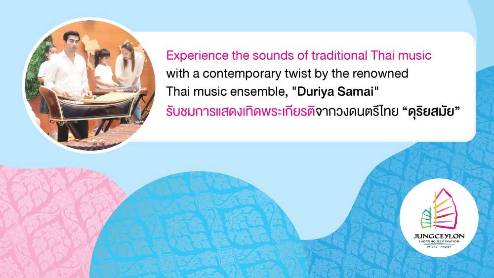 พร้อมรับชมการแสดงดนตรีไทยประยุกต์เทิดพระเกียรติจากวงดนตรีไทย “ดุริยสมัย” และเมื่อช้อปสินค้าภายในศูนย์การค้าจังซีลอนครบ 1,000 บาท สามารถรวมใบเสร็จแล้วนำมาร่วมทำกิจกรรม “สวมชุดไทยเช็คอินกับจังซีลอน” เลือกสวมใส่ชุดไทยที่ชื่นชอบสวยงาม แล้วมาถ่ายภาพจุดเช็คอินที่จังซีลอน ฟรี! (เฉพาะวันที่ 12 ส.ค. 66) ขอเชิญชวนชาวภูเก็ตและนักท่องเที่ยว ร่วมกิจกรรมงาน “Jungceylon Happy Mother’s Day” และร่วมชมนิทรรศการเฉลิมพระเกียรติฯ ติดตามรายละเอียดได้ที่ https://www.facebook.com/JungceylonFanpage หรือสอบถามข้อมูลเพิ่มเติมที่โทร. 076-600-111