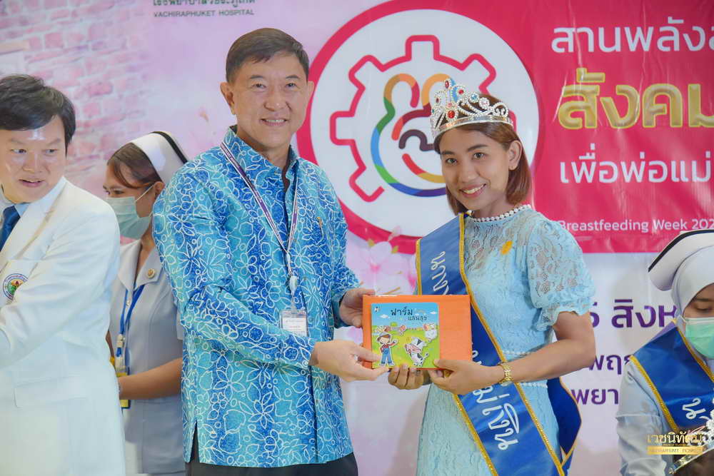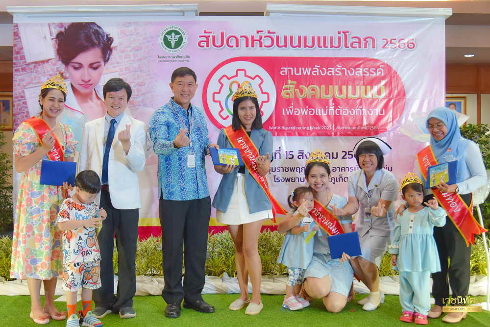 เมื่อวันที่ 15 สิงหาคม 2566 ที่ห้องประชุมราชพฤกษ์ ชั้น 6 อาคารบ้านคุณพุ่ม โรงพยาบาลวชิระภูเก็ตนพ.วีระศักดิ์ หล่อทองคำ ผู้อำนวยการโรงพยาบาลวชิระภูเก็ต เป็นประธานเปิดกิจกรรม สัปดาห์นมแม่โลก 2566 ภายใต้แนวคิด “สานพลังสร้างสรรค์ สังคมนมแม่ เพื่อพ่อแม่ที่ต้องทำงาน”