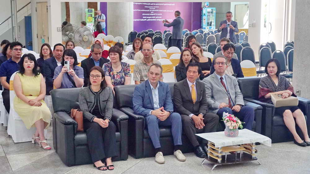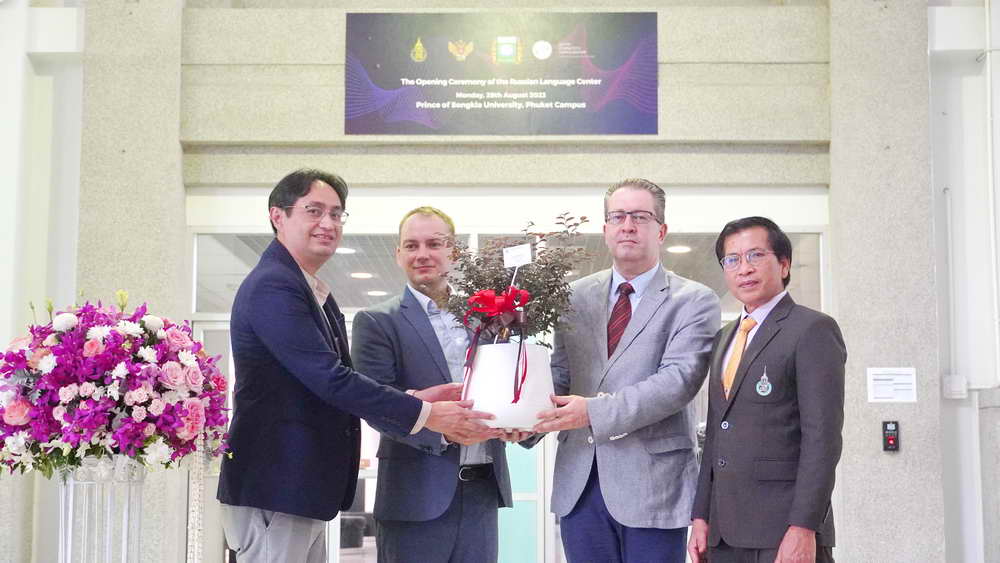 รองศาสตราจารย์ ดร.พันธ์ ทองชุมนุม รองอธิการบดีวิทยาเขตภูเก็ต กล่าวว่า มีความยินดีอย่างยิ่งที่มหาวิทยาลัยสงขลานครินทร์ วิทยาเขตภูเก็ต มีศูนย์ภาษารัสเซีย โดยได้รับการสนับสนุนจากสถานกงสุลใหญ่สหพันธรัฐรัสเซีย ประจำจังหวัดภูเก็ต ซึ่งศูนย์ภาษารัสเซียแห่งนี้เป็นมากกว่าสถานที่แห่งการเรียนรู้ ไม่เพียงแต่สอนไวยากรณ์และคำศัพท์ แต่ยังให้นักศึกษา หรือผู้ใช้บริการได้ดื่มด่ำ กับวรรณกรรม บทกวี ดนตรี และศิลปะรัสเซีย ถือเป็นเครื่องพิสูจน์ถึงศักยภาพอันไม่มีที่สิ้นสุดของการเรียนรู้ต่อไป