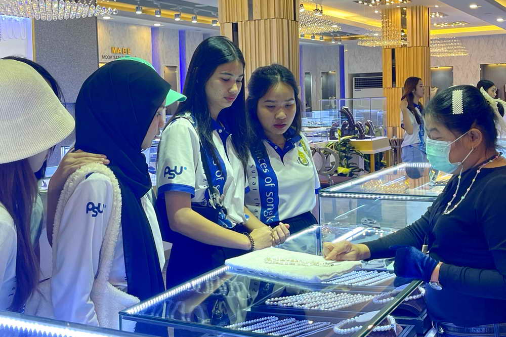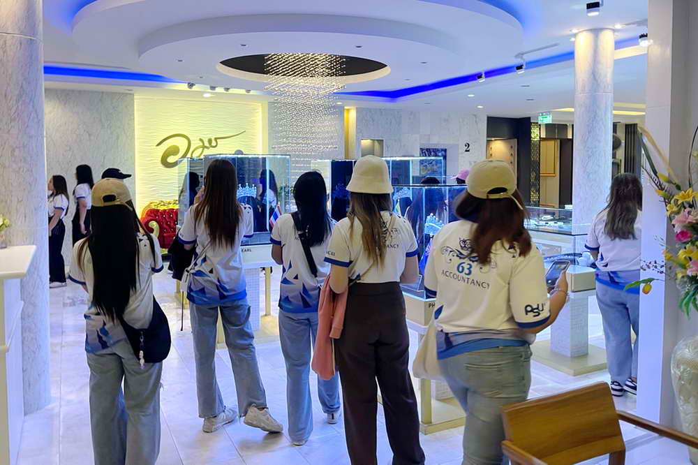 พร้อมทั้งเปิดโอกาสให้นักศึกษาได้แลกเปลี่ยนเรียนรู้มุมมองในการทำงานด้านต่างๆ เช่น ด้านการจัดการการผลิต การตลาดและการบัญชี และได้แวะเข้ามาเยี่ยมชม ฟาร์มและโรงงานแปรรูปอัญมณีไข่มุก อมรภูเก็ตเพิร์ล