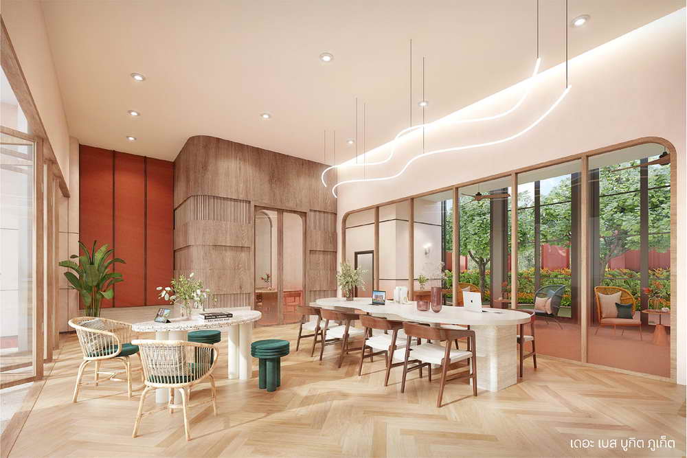 รวมกับธรรมชาติที่สวยงามของทะเลภูเก็ต ทั้งการเคลื่อนไหวของคลื่น และสีสันของต้นไม้ที่มาจากท้องทะเล ผสมผสานเข้ากับความร่วมสมัย และไลฟ์สไตล์คนรุ่นใหม่ภูเก็ต ออกมาเป็นดีไซน์อาคารที่มีเอกลักษณ์โดดเด่นไม่เหมือนใคร อาทิ “หง่อคาขี่” ทางเดินใต้อาคารที่ดึง ”เปอรานากัน” มาใช้ มีเส้นโค้งช่วยให้ตัวอาคารมีมิติ โทนสีโครงการสีเขียวและแดง เป็นสีหลักในการออกแบบ
