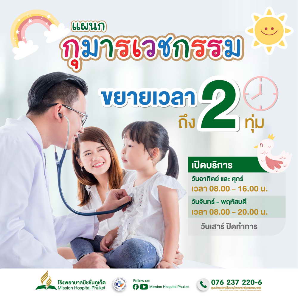 โรงพยาบาลมิชชั่นภูเก็ต แผนกกุมารเวชกรรม ขยายเวลาเปิดให้บริการ ถึง 2 ทุ่ม