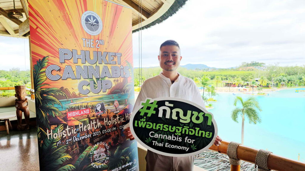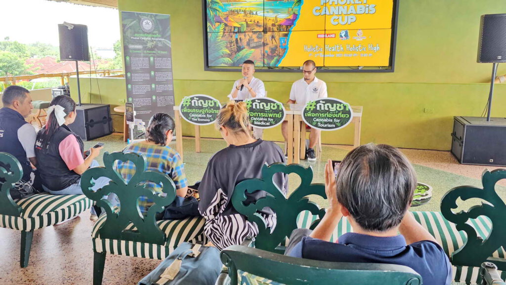 เมื่อวันที่ 27 กันยายน 2566 บริเวณชั้น 3 สวนน้ำบลูทรี ภูเก็ต นายปูรณ์วริทธิ์ หวังภัทราวานิช นายกสมาคมกัญชาภูเก็ต และคณะกรรมการฯ ร่วมแถลงข่าวการจัดงาน Phuket Cannabis Cup ครั้งที่ 2 รวบรวมโลกแห่งสุขภาพและกัญชาแบบองค์รวม ภายใต้หัวข้อ “Holistic Health, Holistic High”
