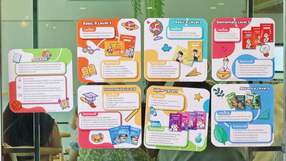 สำหรับหลักสูตรซึ่งมี 6 ระดับ ประกอบด้วย 1.Basic A Level 1 เพิ่มและลดตัวเลขกับทักษะการใช้ลูกคิด ปูพื้นฐานทักษะแนวคิดการคิดเลขในใจ 2.Basic B Level 2 เพิ่มลดตัวเลขด้วยกับลูกคิดและการคิดเลขในใจ การสังเกต-ทักษะพื้นฐานต่อการ “จินตนาการ” ภาพลูกคิด การฝึกฝนการฟังและทำตามคำบอก