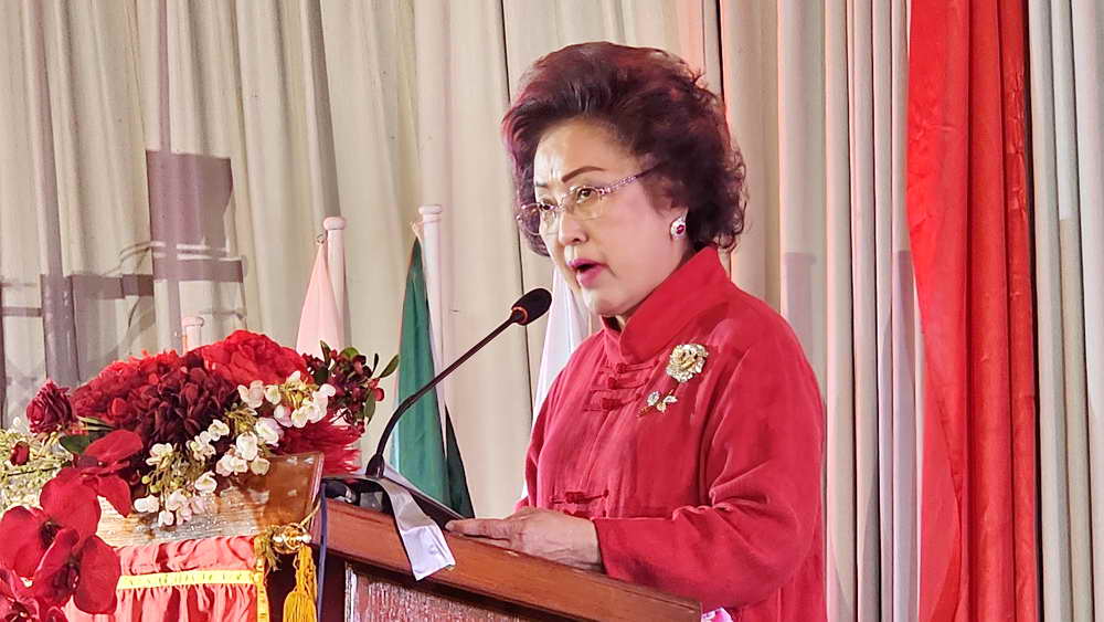 ด้านนางเมิ้งเหมียน รองกงสุลใหญ่ สาธารณรัฐประชาชนจีน ณ จังหวัดสงขลาใจ กล่าวว่า ดีใจเป็นอย่างยิ่งที่เป็นตัวแทนของท่าน กงสุลใหญ่ของสาธารณรัฐประชาชนจีน ประจำสงขลามาร่วมงานฉลองครบรอบ 74 ปี การสถาปนาสาธารณรัฐประชาชนจีน และครบรอบ 35 ปี การสถาปนาสมาพันธ์ชาวไทยเชื้อสายจีนจังหวัดภูเก็ต และพิธีสถาปนาประธานสมาพันธ์ประจำปี 2566-2567