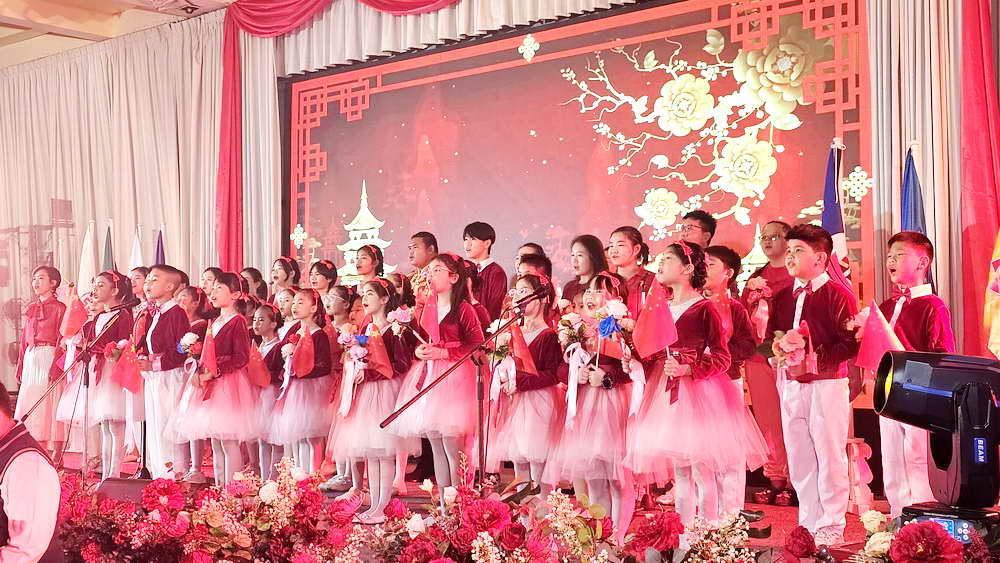 ภายใต้การนำอันแข็งแกร่งของคณะกรรมการกลางพรรคคอมมิวนิสต์ โดยมีท่านสี จิ้น ผิง เป็นแกนหลัก ประชาชนทุกชนชาติทั่วประเทศยึดมั่นในแนวทางสังคมนิยมที่มีลักษณะเฉพาะของจีน ส่งเสริมการฟื้นฟูความยิ่งใหญ่ของประชาชาติจีน และสร้างสรรค์ประเทศสังคมนิยมแบบทันสมัยอย่างรอบด้าน และกำลังก้าวไปสู่เป้าหมายการต่อสู้ 100 ปีวาระที่สอง