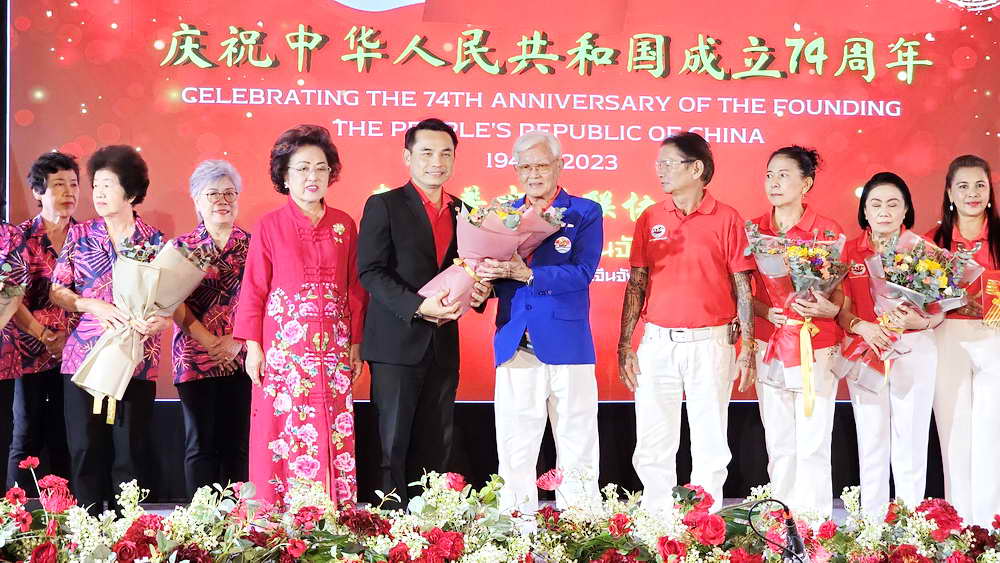 เมื่อวันที่ 1 ตุลาคม 2566 ที่ห้องแกรนด์บอลรูม โรงแรมรอยัลภูเก็ตซิตี้ สมาพันธ์ชาวไทยเชื้อสายจีน จังหวัดภูเก็ต โดยนางธันยรัศม์ อิจฉริยฉาย ประธานสมาพันธ์ชาวไทยเชื้อสายจีนจังหวัดภูเก็ต และคณะกรรมการฯ ร่วมกันจัดงานเฉลิมฉลองวันชาติจีนครบรอบ 74 ปี แห่งการสถาปนาสาธารณรัฐประชาชนจีน และพิธีสถาปนาคณะกรรมการบริหารสมาพันธ์ชาวไทยเชื้อสายจีน จังหวัดภูเก็ต ครั้งที่ 35