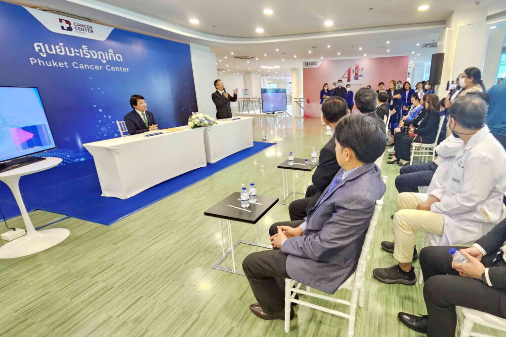 ขณะที่ ศาสตราจารย์พิเศษ นพ.ธีรวุฒิ คูหะเปรมะ ผู้อำนวยการโรงพยาบาลมะเร็งกรุงเทพ วัฒโนสถ กล่าวเพิ่มเติมถึงความร่วมมือระหว่างโรงพยาบาลในการจัดตั้งศูนย์มะเร็งภูเก็ต (Phuket Cancer Center) ว่า “ด้วยประสบการณ์การเป็นโรงพยาบาลเฉพาะทางด้านมะเร็งของโรงพยาบาลมะเร็งกรุงเทพ วัฒโนสถมีแผนในการขยายการบริการของศูนย์มะเร็งไปยังจังหวัดต่าง ๆ ทั่วประเทศ ซึ่งศูนย์มะเร็งภูเก็ตเป็นหนึ่ง ในโครงการดังกล่าว โดยโรงพยาบาลมะเร็งกรุงเทพ วัฒโนสถ ได้ให้การสนับสนุน ตั้งแต่การฝึกประสบการณ์ด้านการรักษาให้แก่ทีมแพทย์รังสีรักษา พยาบาลรังสีรักษา นักฟิสิกส์ และนักรังสีเทคนิค