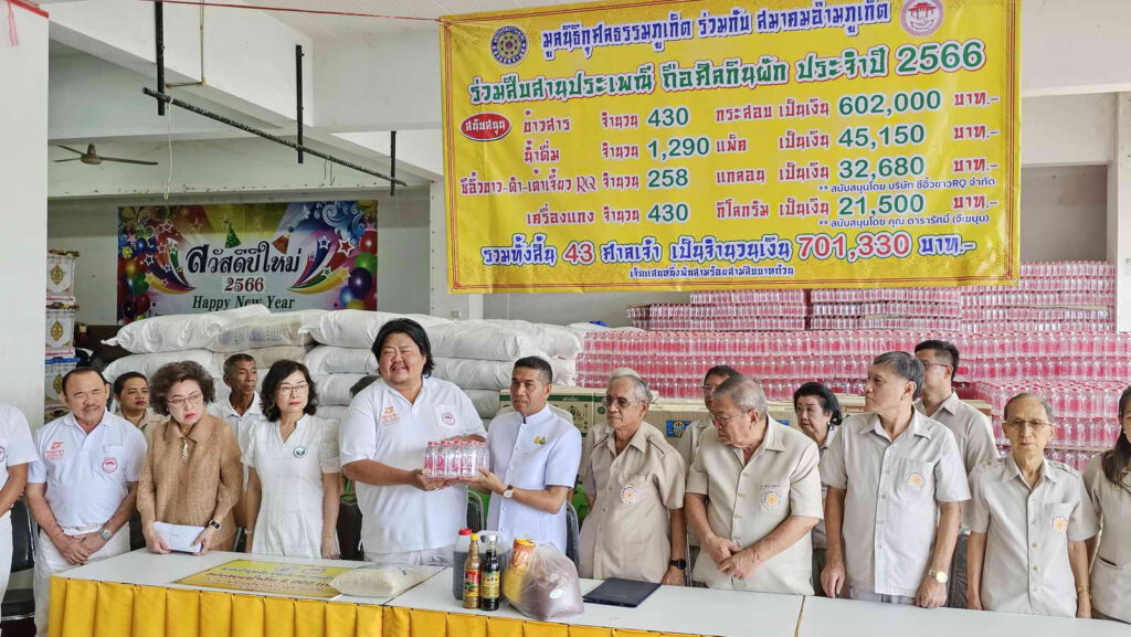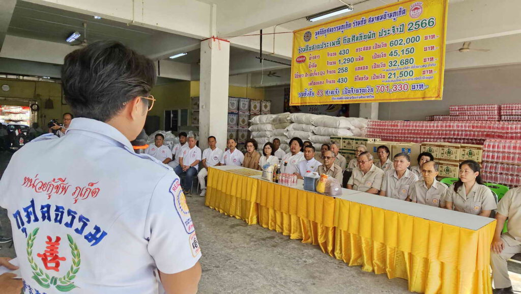 มูลนิธิกุศลธรรมภูเก็ต และหน่วยงานต่างๆ มอบเครื่องอุปโภค บริโภคให้อ๊ามต่างๆ เพื่อร่วมสืบสานประเพณี ถือศีลกินผักของจังหวัดภูเก็ต