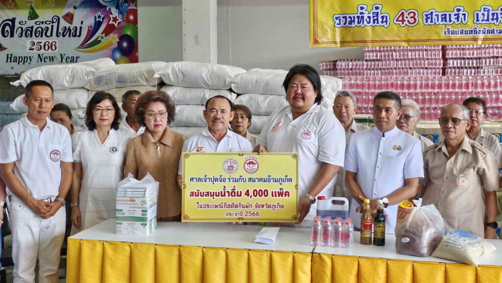 โอกาสนี้นางธันยรัศม์ อัจฉริยะฉาย อดีตสมาชิกวุฒิสภาภูเก็ต และผู้บริหารโรงแรมในเครือกะตะกรุ๊ป ร่วมมอบเงินให้แก่อ๊ามละ 5,000 บาท นอกจากนี้นายจีรวิทย์ ปิติกุลสถิตย์ ประธานอ๊ามจุ้ยตุ่ยและอ๊ามปุดจ้อสนับสนุนน้ำดื่ม 4,000 แพ็ค ในงานประเพณีถือศีลปฏิบัติจังหวัดภูเก็ตประจำปี 2566 และทางสำนักงานสาธารณสุขจังหวัดภูเก็ต ได้มอบเวชภัณฑ์ให้แต่ละอ๊ามด้วย